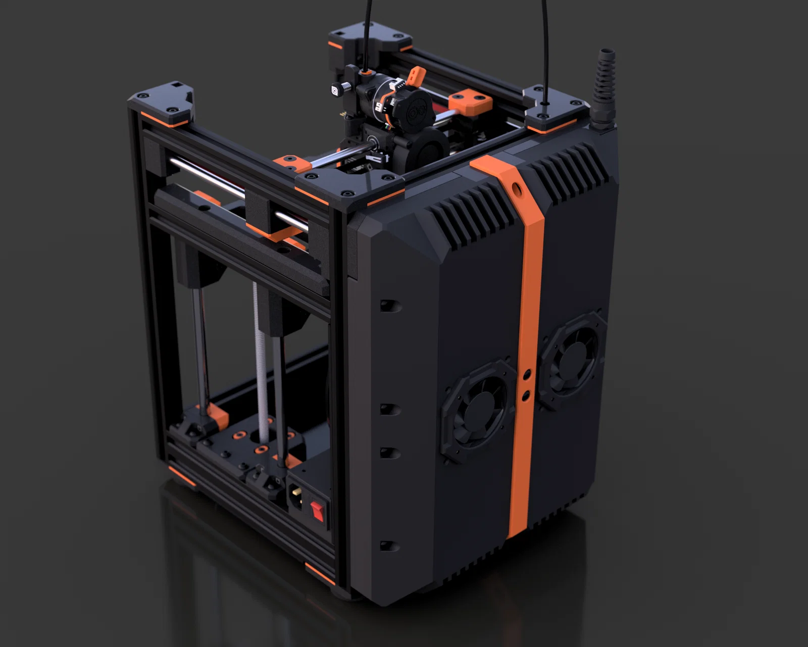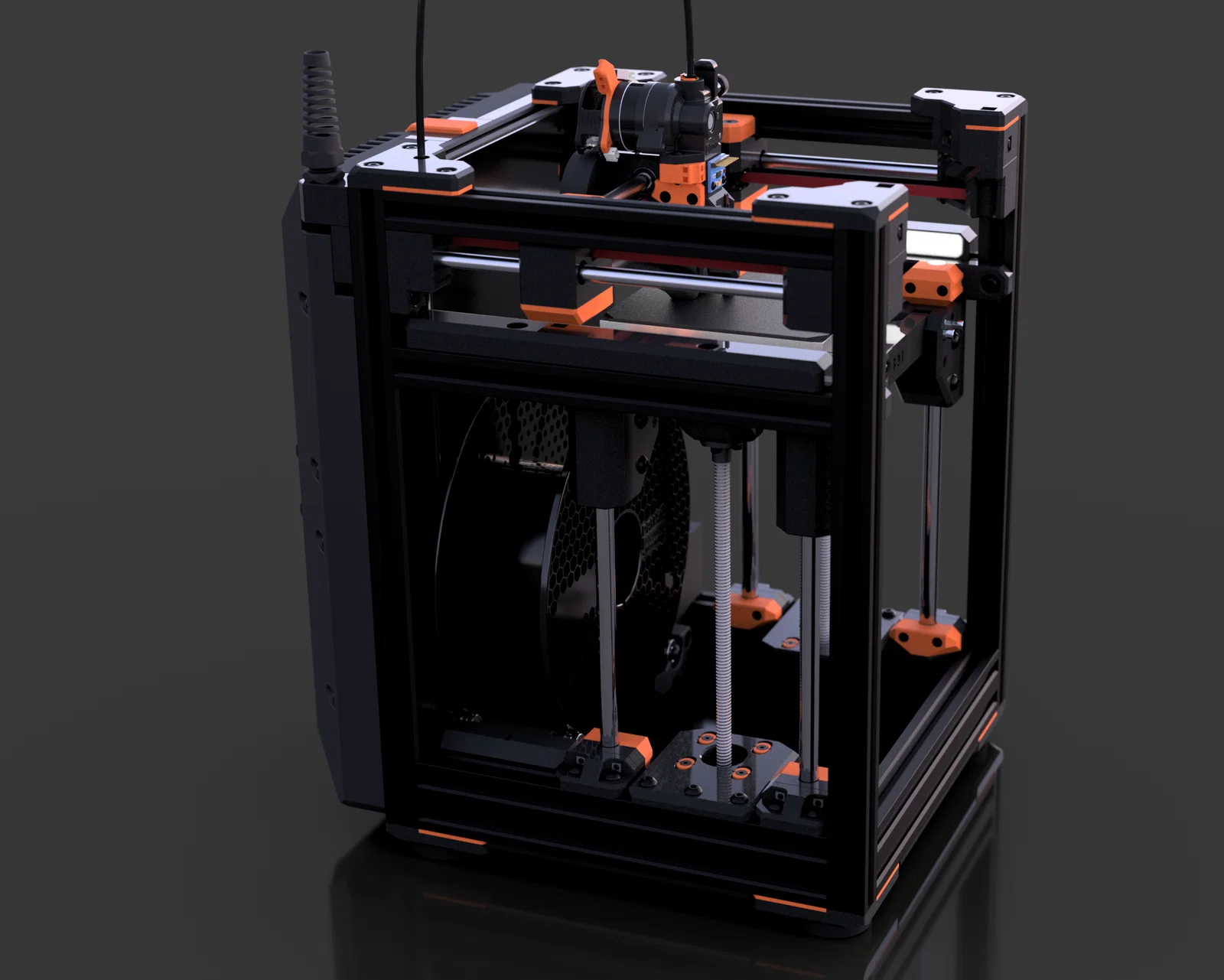 - Cấu trúc khung: Sử dụng nhôm định hình và các chi tiết in 3D, nên in bằng vật liệu chịu nhiệt tốt như PETG hoặc ABS để đảm bảo độ bền.