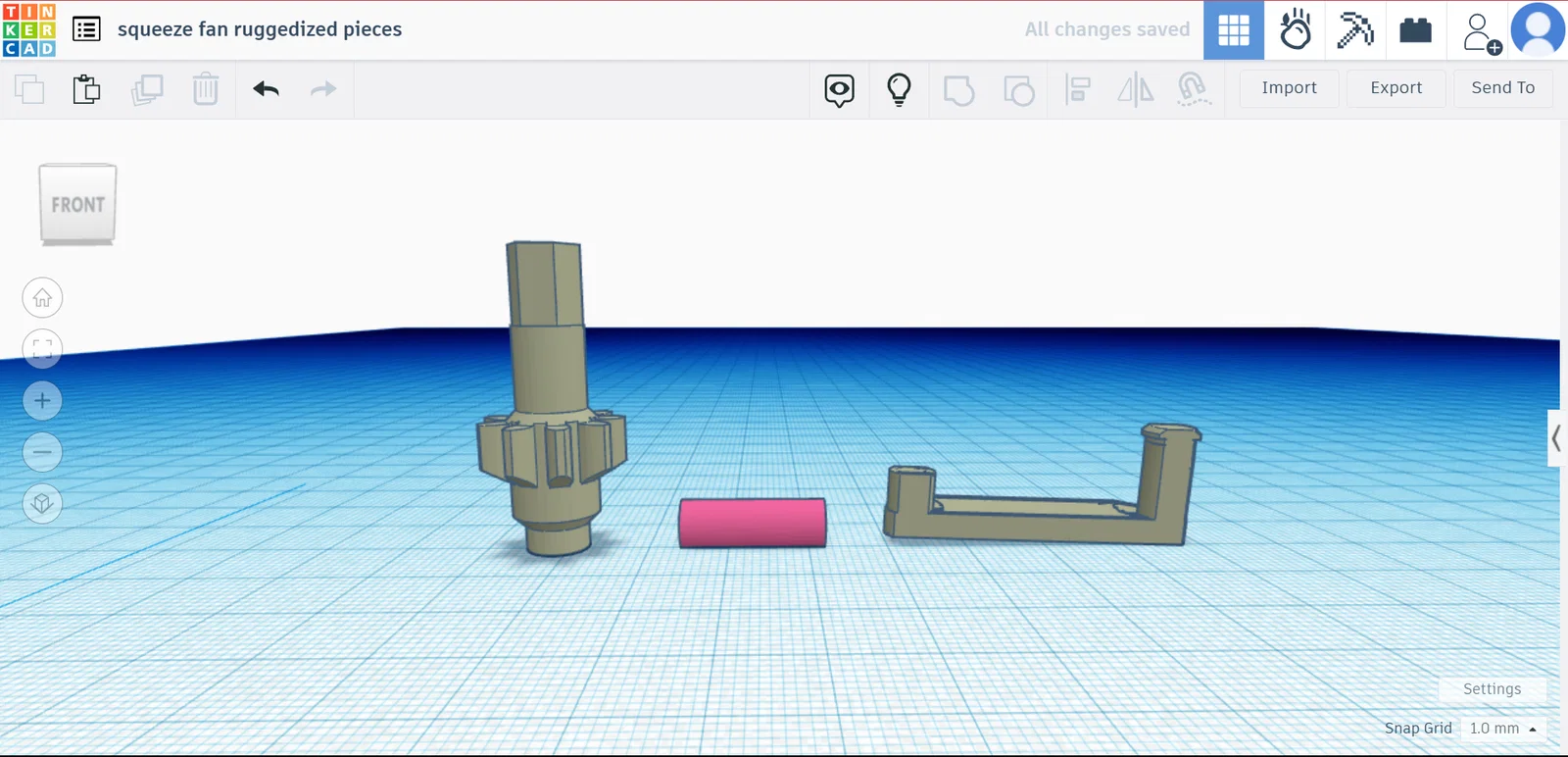 Phần crank mình có kéo dài thêm một chút, chỉ ở đoạn vốn đã dài sẵn {Như bạn thấy trong hình tinkercad}. Mình làm vậy vì crank hay bị bật ra khỏi handle khi mình quay nhanh.