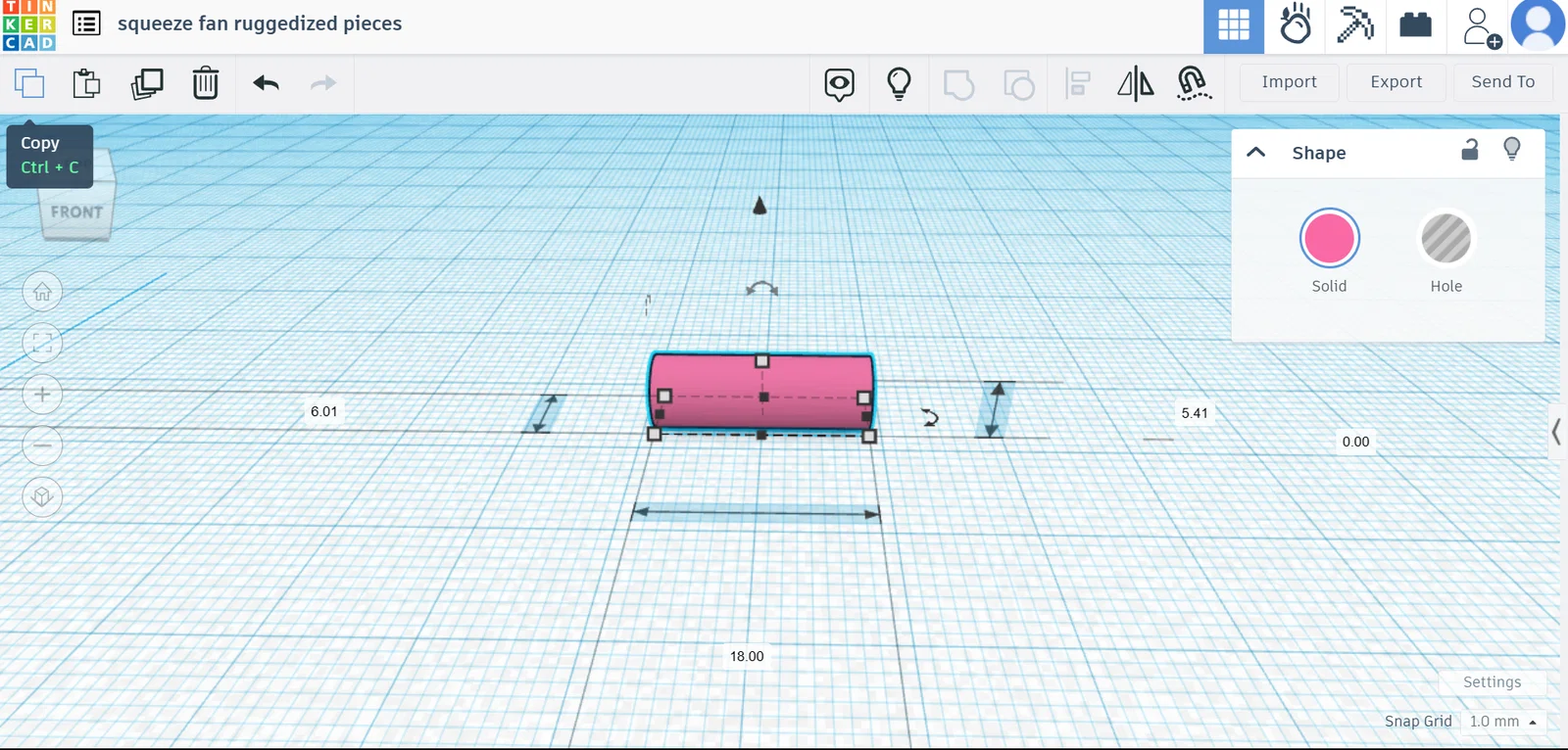 Mấy cây pins thì chỉ scale lên 109.3% so với kích thước gốc, rồi chỉnh lại mỗi chiều dài về 18mm như ban đầu để nó không bị “thò” quá nhiều ra khỏi vỏ. Mình làm vậy vì cái cover hay bị bung ra khi mình quay nhanh, nên giờ pins giữ cover chắc hơn. Pins sẽ hơi khó nhét vô case, nhưng mục đích của nó là để kẹp cover thật chắc. Mình in case bằng PETG nên mình không chắc mấy pins này có làm bể cover in bằng PLA hay không.