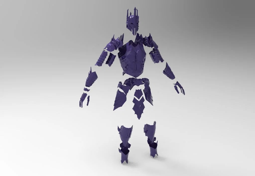 Bộ giáp Sauron hoàn chỉnh cho cosplay, thiết kế theo dạng lắp ghép: giáp tay/ngón tách rời để dán lên găng, giáp ngực và vai cần dây đai hoặc velcro. File được sắp xếp theo thư mục và có thể resize (mặc định cao 500mm).