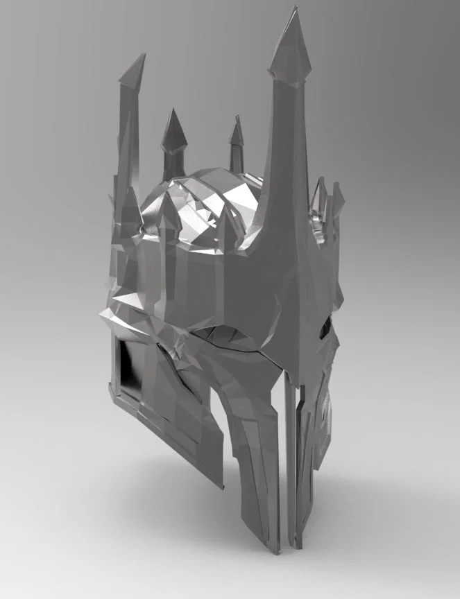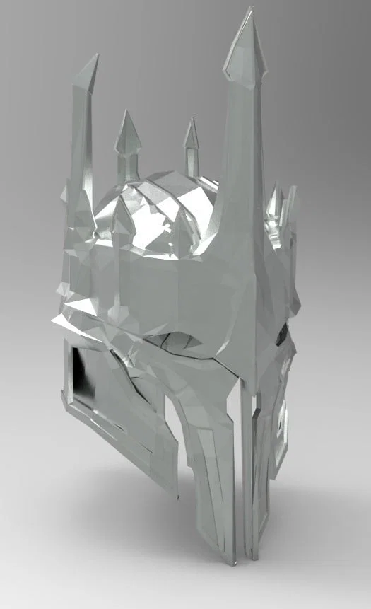 Mẫu mũ Helmet của giáp Sauron (LOTR). Tác giả đã hoàn tất cả bộ armor và có link xem model; riêng helmet đã sẵn nhưng có thể không kịp in trước Halloween. Render bằng Keyshot.