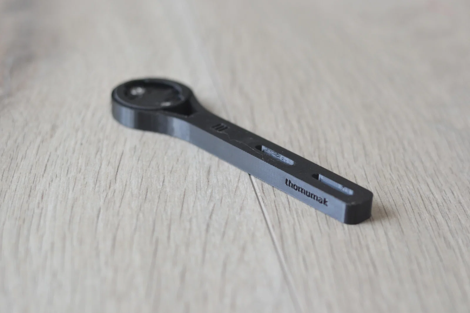 Ban đầu mình dựa theo một cái ngàm kim loại mình đang có, nhưng sau đó phát hiện bản nhựa thì yếu quá. Bản đầu tiên mình in bằng PLA đã bị gãy rời khi đang chạy xe, nên mình đã cải tiến thiết kế đáng kể: tăng độ dày ở những chỗ cần, bo tròn các lỗ, v.v. Mình cũng chuyển sang PETG (chỉ cho phần chính). Sau đó mình test uốn và test va đập ở nhà, kết quả tốt hơn rất nhiều so với thiết kế cũ, rồi đem dùng vài chuyến đi mà không gặp vấn đề gì. Nên mình nghĩ là ổn, ít nhất là khi chưa gắn GoPro (vì GoPro sẽ làm tăng lực tác động).
