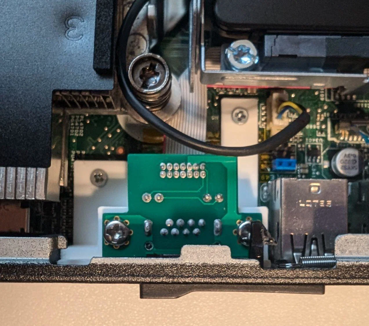 - Kiểm tra kỹ: Trước khi siết chặt vít, anh em hãy căn chỉnh sao cho đầu cổng mạng khớp hoàn toàn với khung vỏ của máy để tránh tình trạng vướng víu khi cắm cáp.