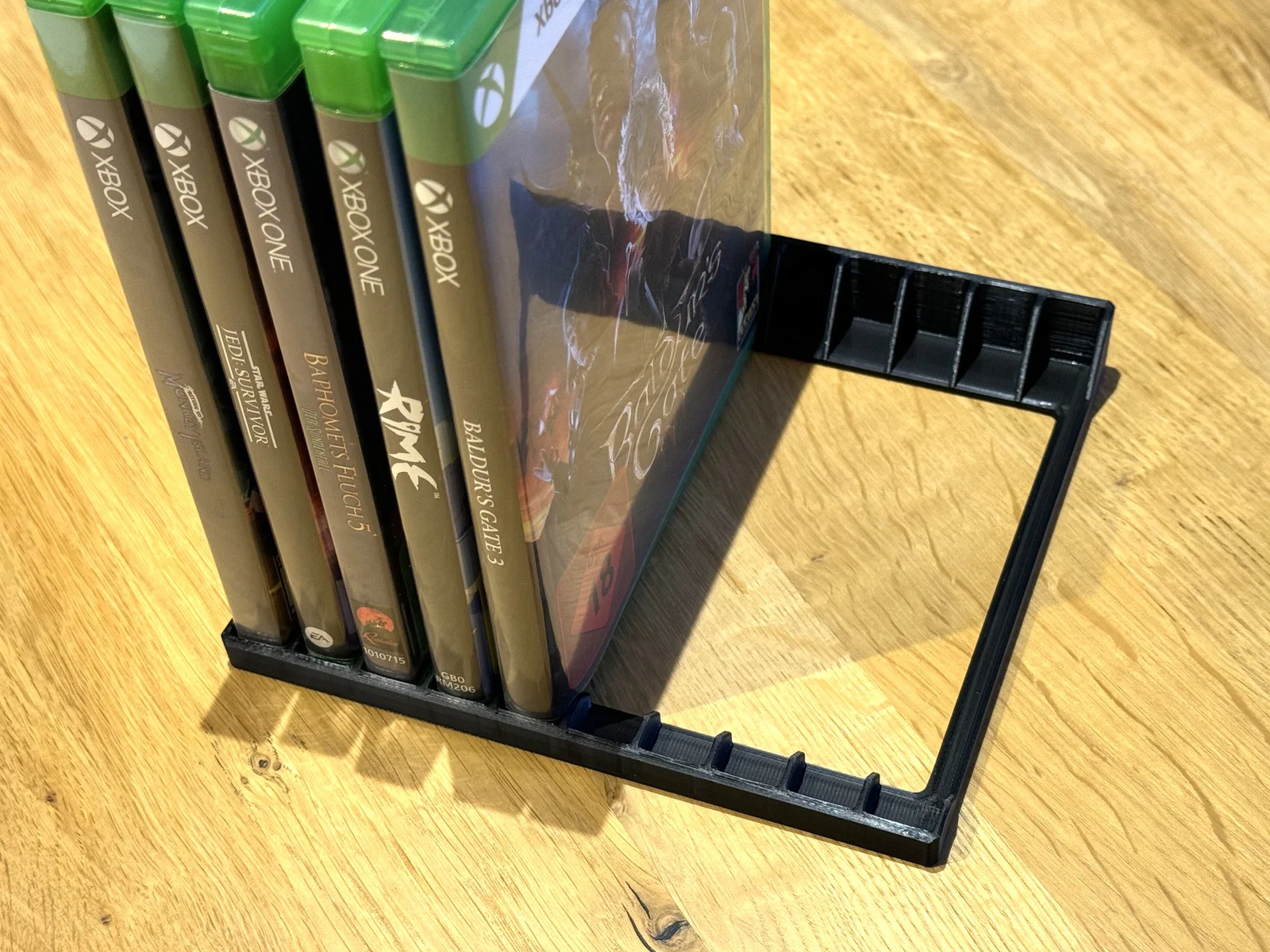 Bản remix của thiết kế gốc, tối ưu hình học để giảm thời gian in và hao vật liệu. Khe để hộp được thu hẹp ~2 mm cho hộp game Xbox One & Xbox Series S/X mỏng hơn, viền giữ nguyên.
