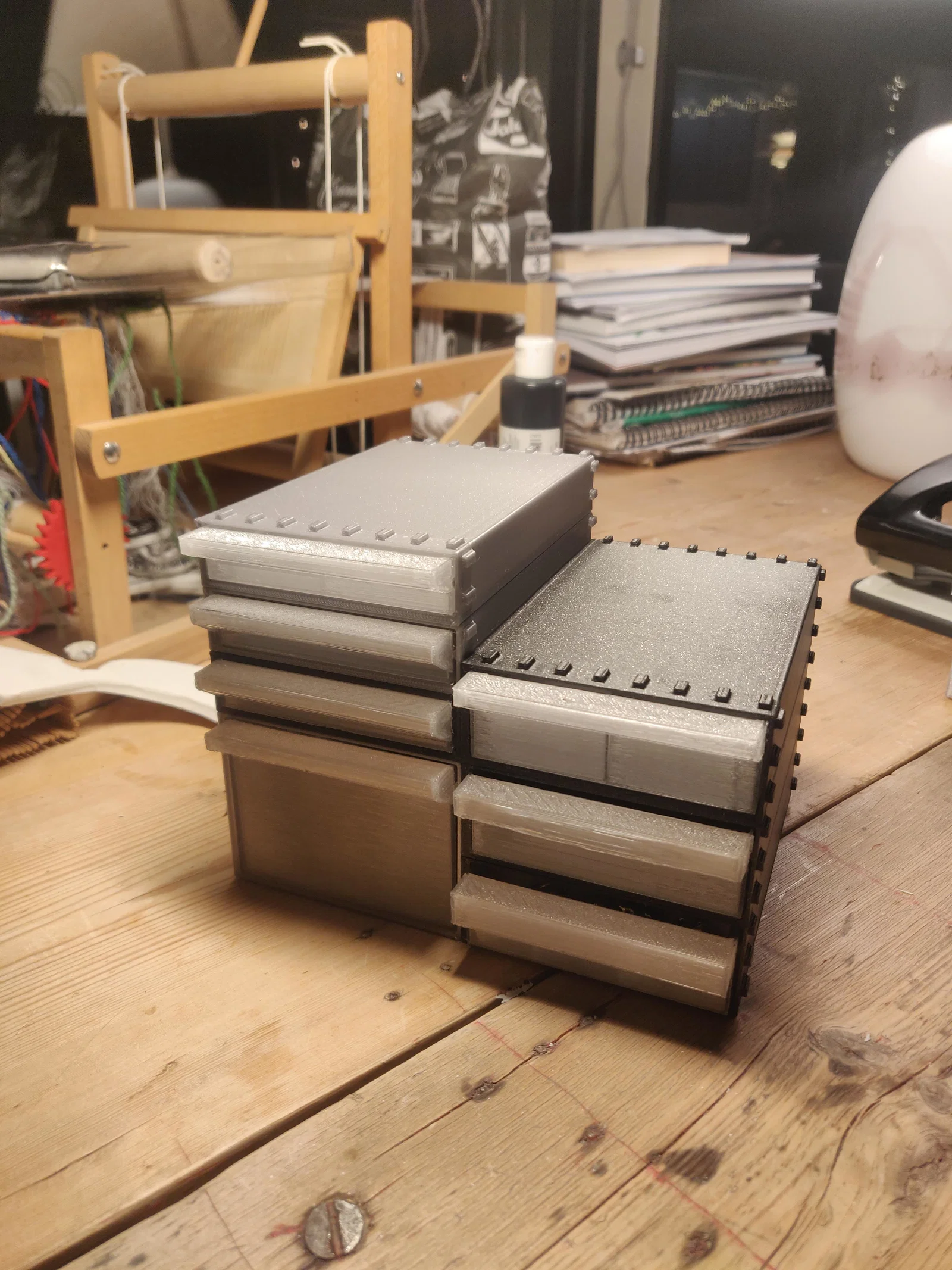 Moduar Drawer System là bộ ngăn kéo modular lắp ráp snap-fit theo kích thước cm số nguyên, cho phép tuỳ biến linh hoạt theo nhu cầu. Có file Fusion 360 để chỉnh parameters, bản mới không cần support (trừ mũi ngăn kéo).