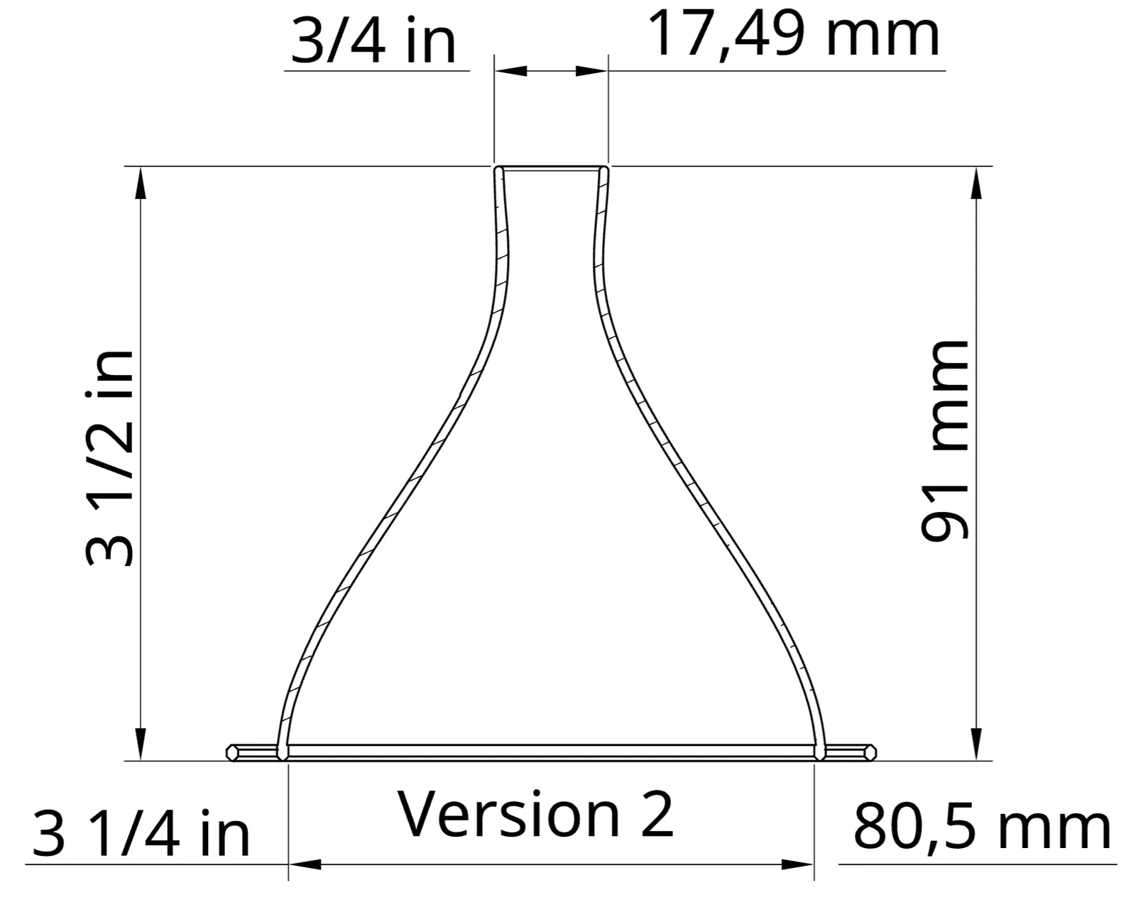 Mẫu phễu cỡ miệng chai tiêu chuẩn, tối ưu đổ nhanh nhờ đầu vòi theo hiệu ứng Venturi và tiết diện oval/tri-oval giúp thoát khí, tránh nghẹt do áp suất. Có các bản v2 buồng lớn, v3 tri-oval, v4 bất đối xứng.