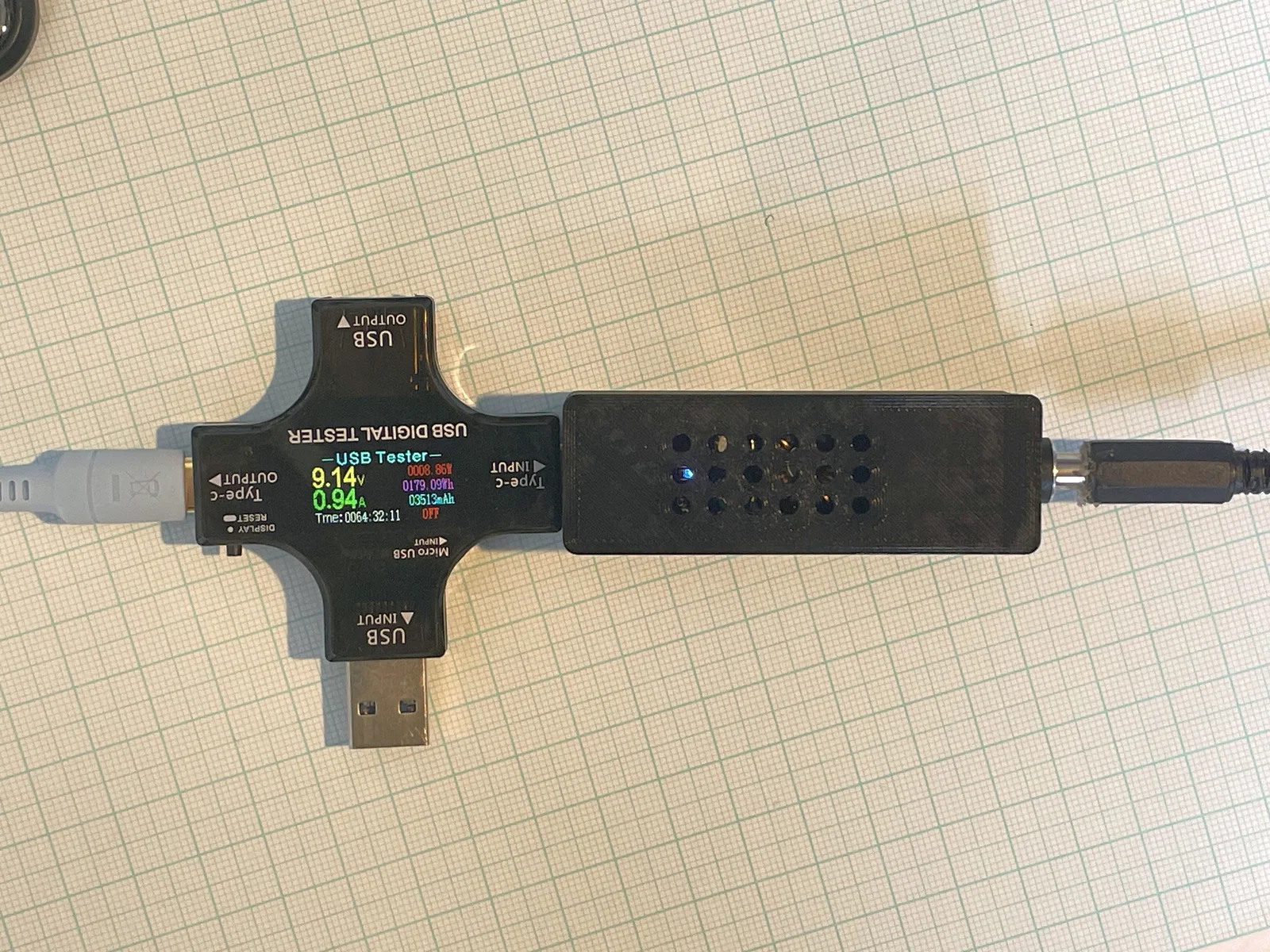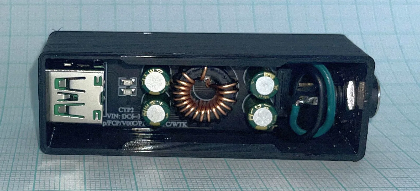 Module có trên Ali khi tìm: "QC4.0 QC3.0 1 Way USB Type-C Mobile Phone Quick Charge Adapter 6-35V Step Down Buck Boost Module SW3516": , kích thước PCB 50x20 (cái của mình 50 x 19.2). Tiếc là mặt đáy PCB có rất ít phần phẳng, chưa kể là không có lỗ bắt vít. Ở phía đối diện với USB A&C là một jack nguồn DC 5.5x2.1mm. Lưu ý là không gian khá chật: trước hết hàn dây nằm phẳng từ phía trên (đừng luồn dây qua lỗ trên PCB), rồi hàn dây vào jack DC, sau đó mới siết đai ốc. Mình có vài tấm hình của phiên bản đầu tiên. Chúc bạn in vui.