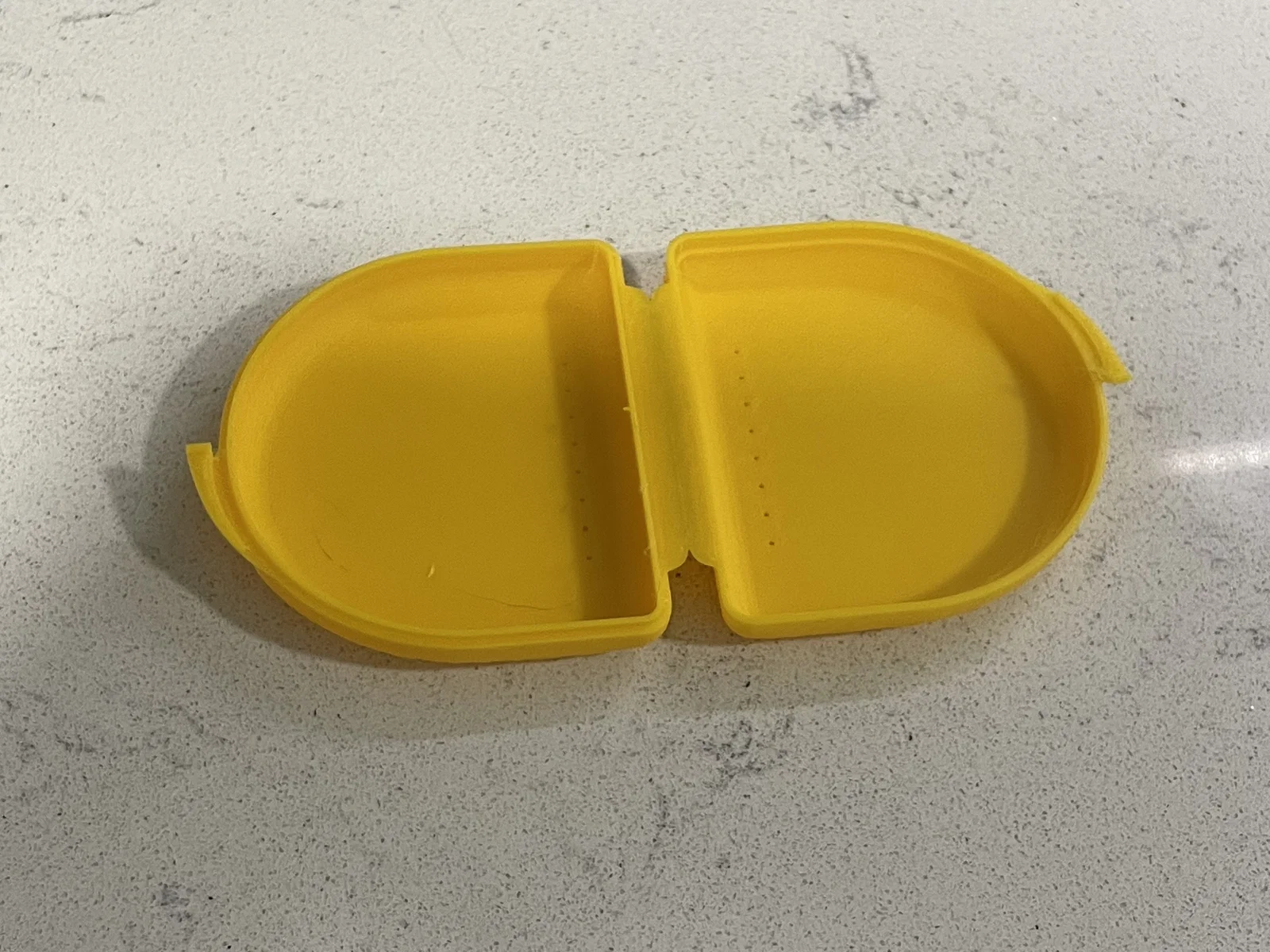 Hộp dùng để cất brackets/niềng răng (dental braces) khi ăn uống hoặc cần tháo ra. Gợi ý in PLA, layer height 0.12mm, thêm support hai bên phần khóa. Lần đầu dùng bẻ gập nhẹ khi còn ấm để bảo vệ bản lề.