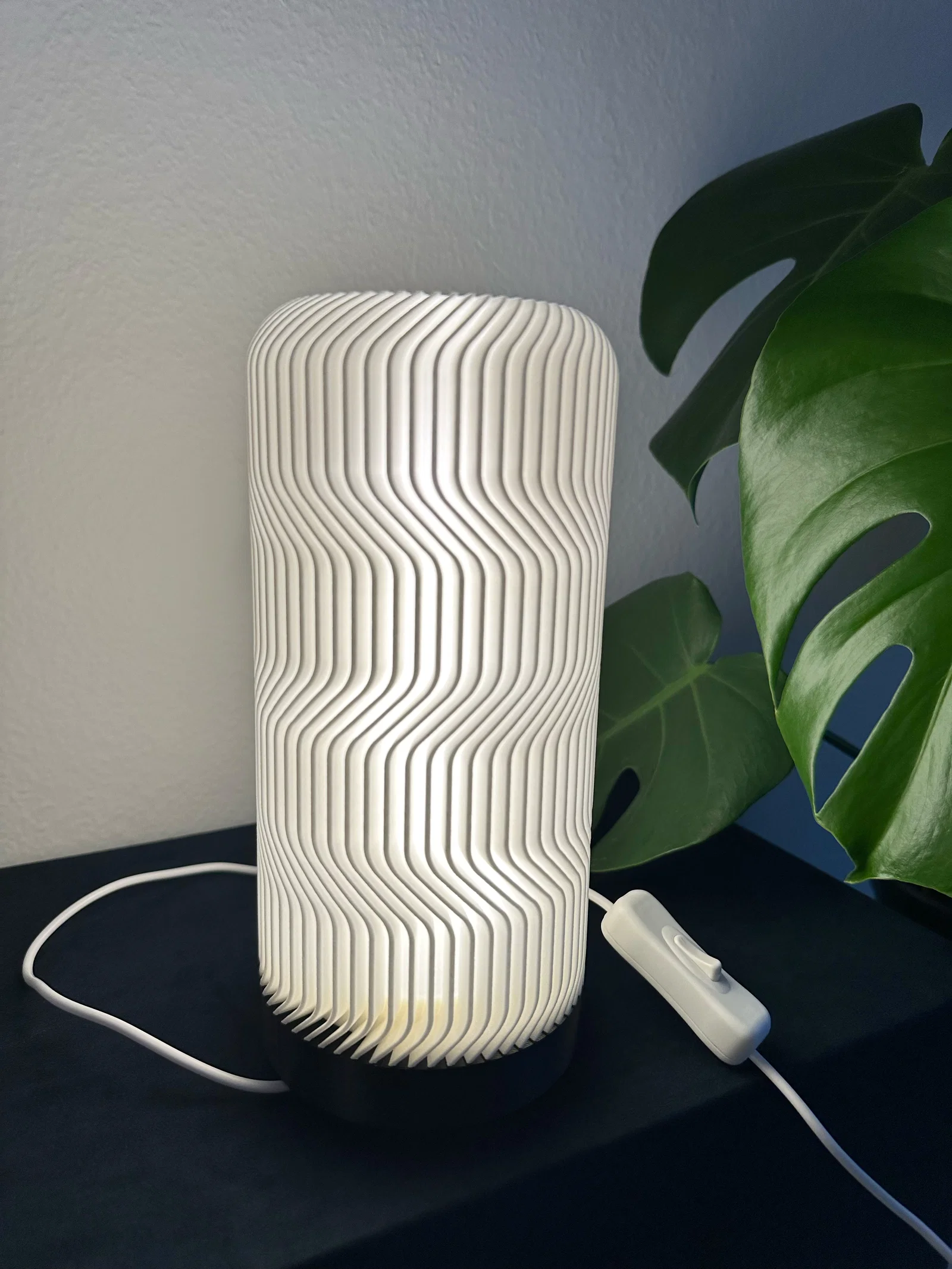 Shade (chụp đèn): Mình dùng LW-PLA và in ở chế độ vase mode. Mình rất thích cảm giác và ngoại hình của chụp, và mình nghĩ nó cũng giúp tán ánh sáng đều hơn một chút.