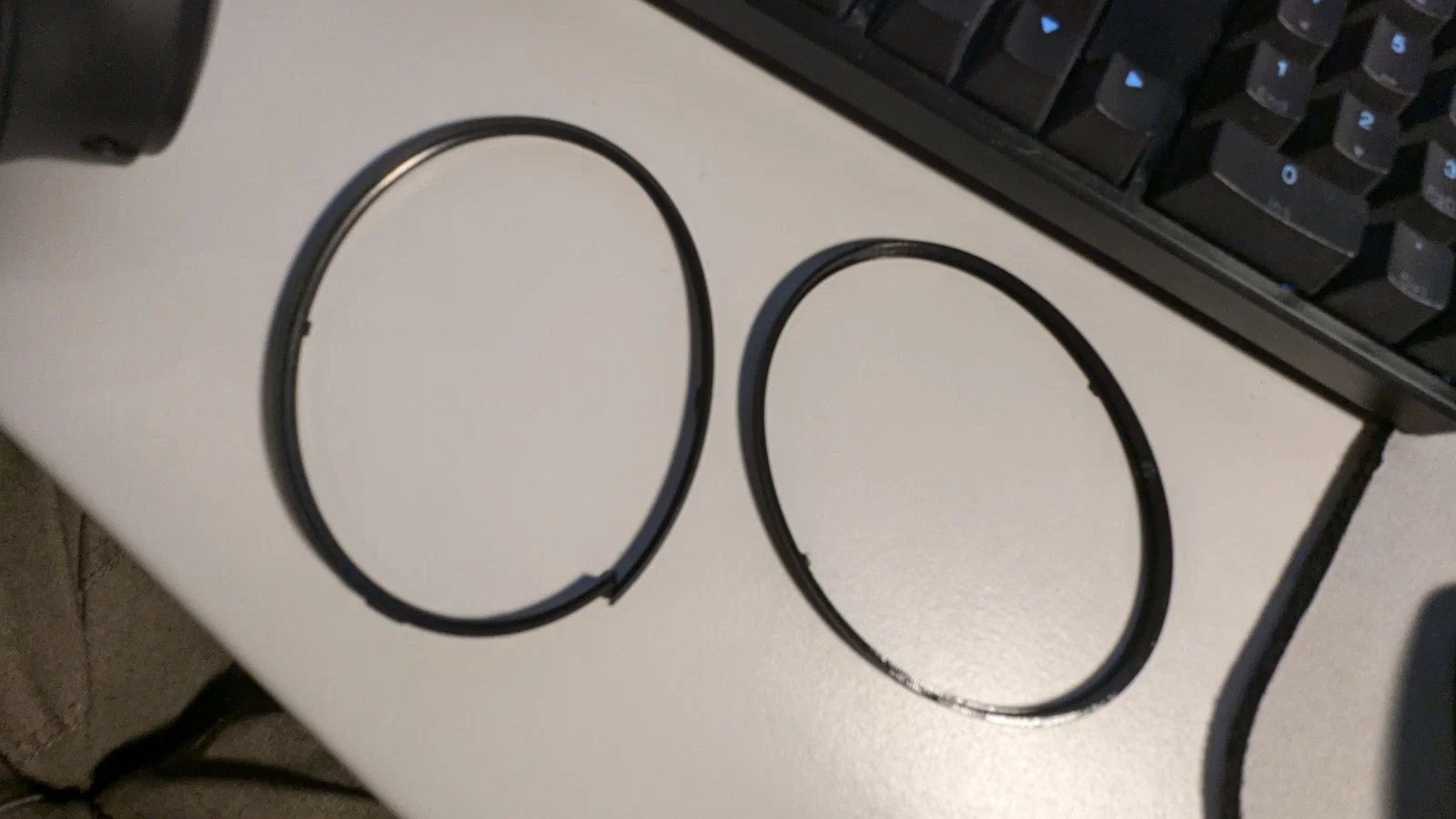 Sau khi thay đệm tai cho tai nghe Bose QC35 của mình khoảng 3–4 lần, cái vòng viền (trim ring) mềm quanh một bên earpiece bị gãy. Mình đã tự thiết kế món này và in bằng TPU (chắc cũng không thật sự cần). In trên MK3S+ với layer height 0.15mm. Khi in thì đặt mặt có các ngàm canh chỉnh (alignment tabs) úp xuống. Chắc không cần brim.