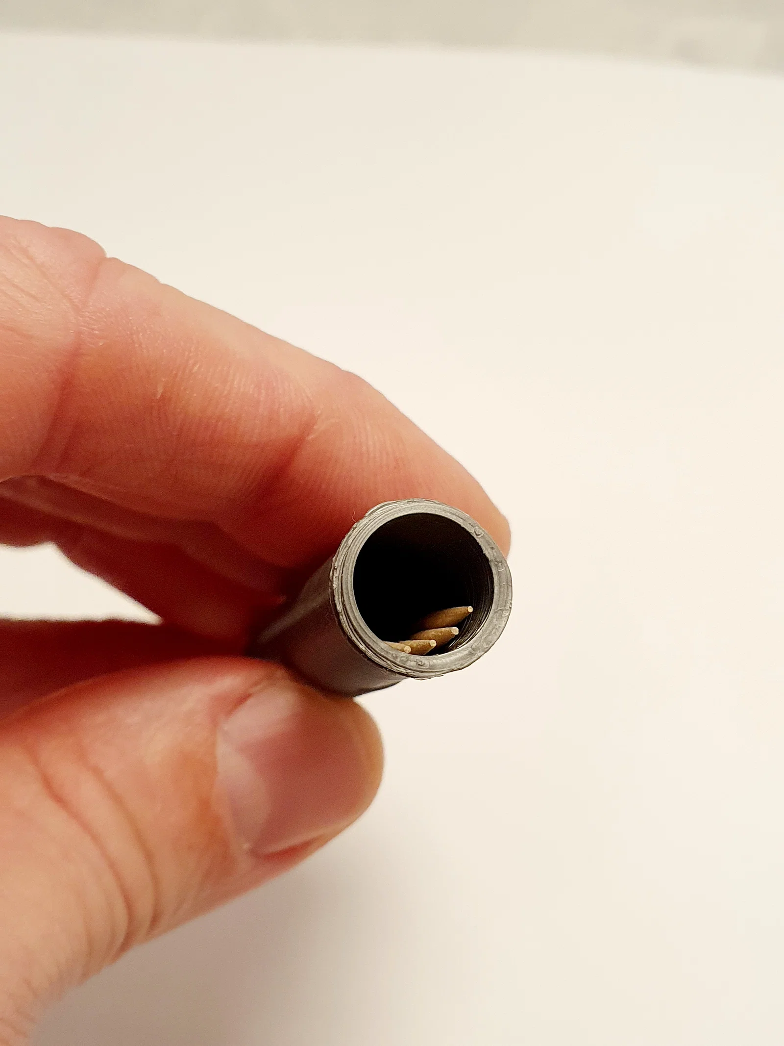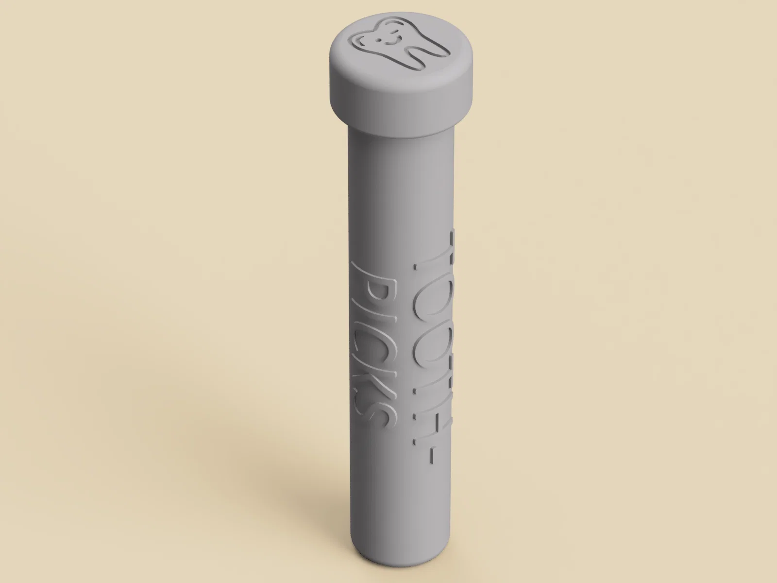 Hộp đựng tăm nhỏ gọn cho đi du lịch/cắm trại, nắp vặn an toàn. Chứa khoảng 15–20 cây tăm, dài tối đa 67mm. In không cần support (0,15mm layer, 20% infill); có thể cần brim hoặc glue.