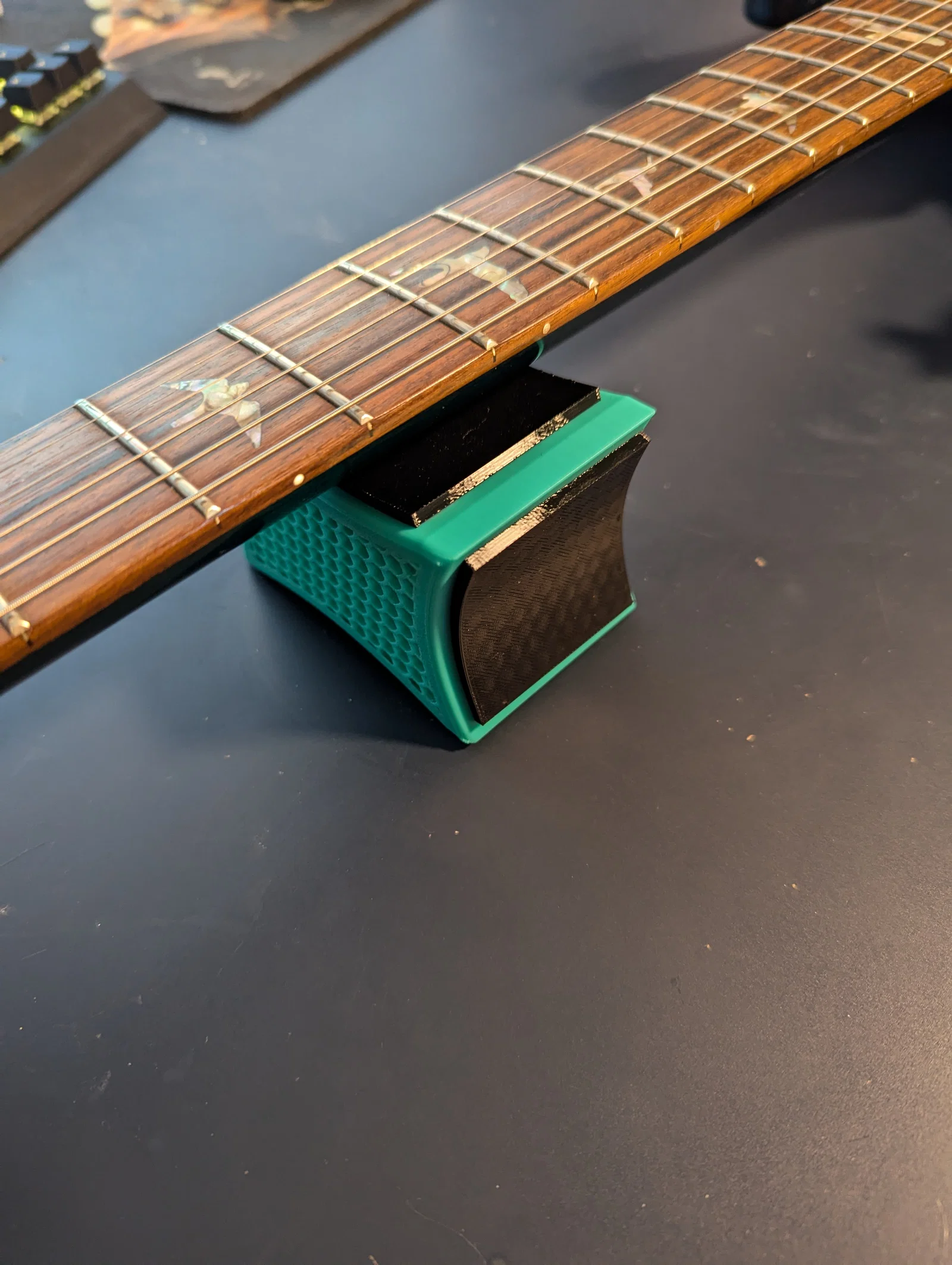 Guitar Neck Rest dùng để kê cần đàn khi setup hoặc bảo trì, phù hợp cho cả guitar điện và acoustic. Kèm thông số in khuyến nghị: Honeycomb infill 15%, thiết lập riêng cho block và miếng đệm TPU.