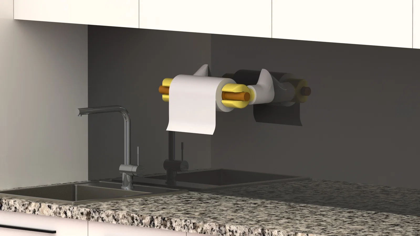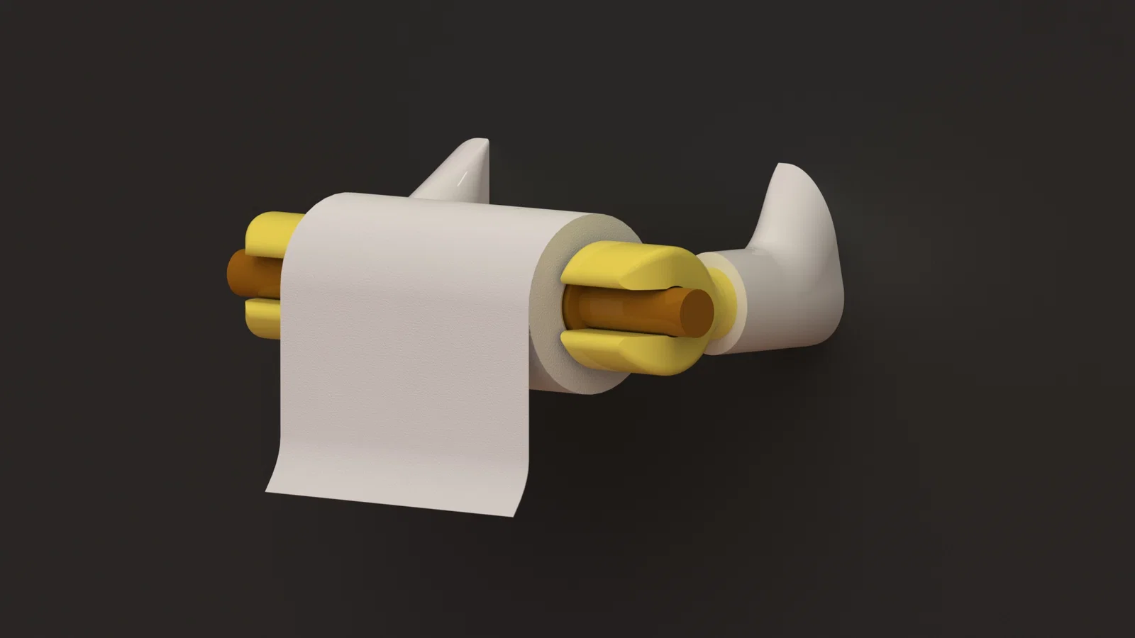 Kệ treo cuộn giấy bếp tối giản lấy cảm hứng từ Lego Mini Figure: hai tay ôm Roller Pin để giữ cuộn giấy. Có 2 phiên bản đường kính (47.1 mm và 37 mm), dễ chỉnh chiều dài trong PrusaSlicer.