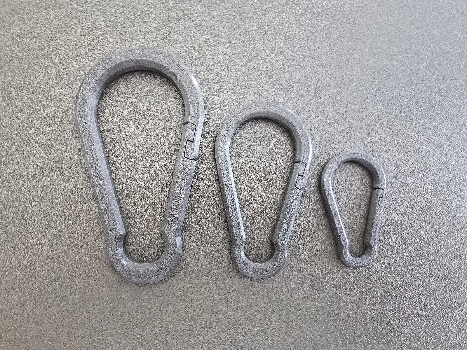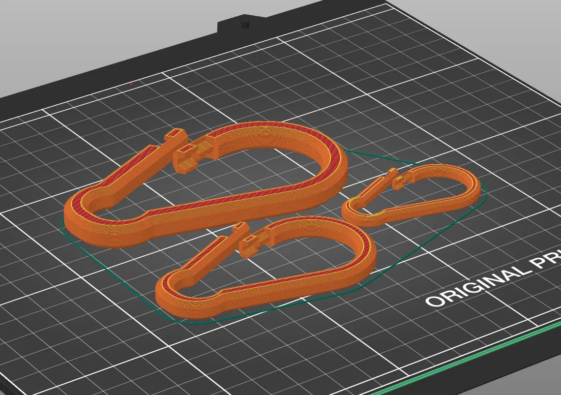 Sau khi thiết kế trong Fusion 360, qua các lần test in và chỉnh sửa nhiều vòng, mình nhận ra nó rất bền khi in ở 100% infill. Sau đó mình làm 3 kích cỡ Carabiner, vì mình sẽ dùng chúng cho nhiều việc ở nhà, đi cắm trại và các hoạt động khác.