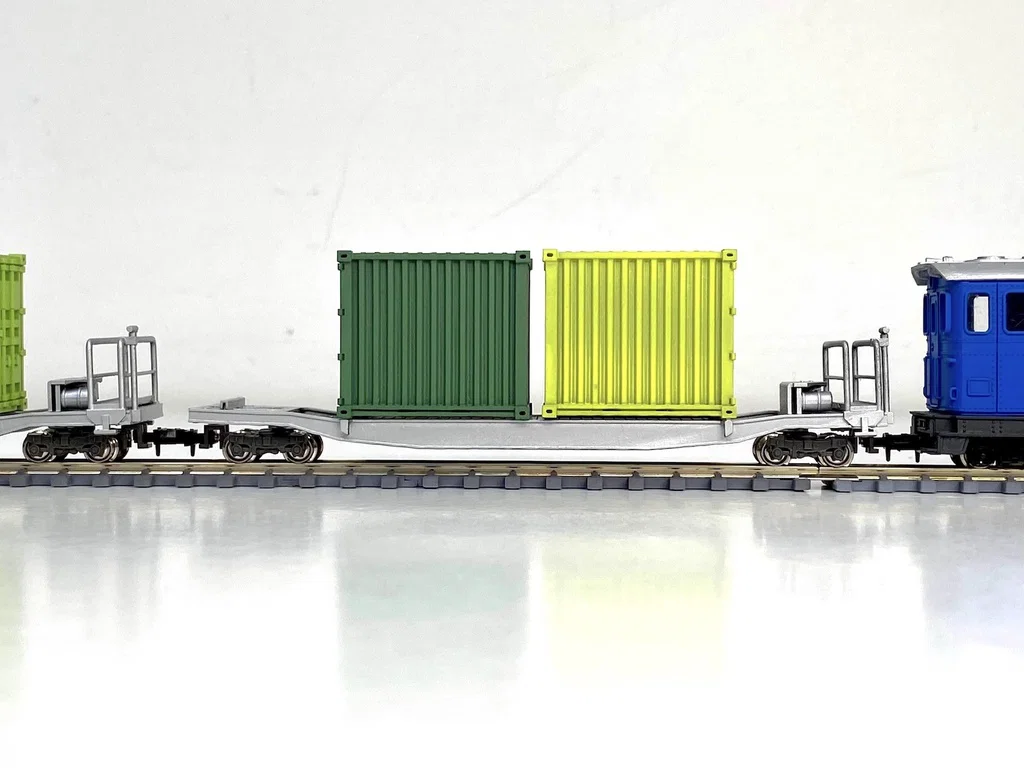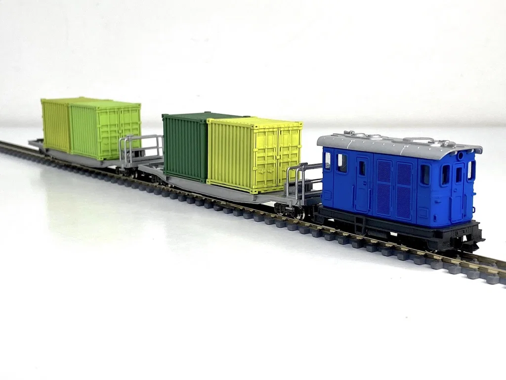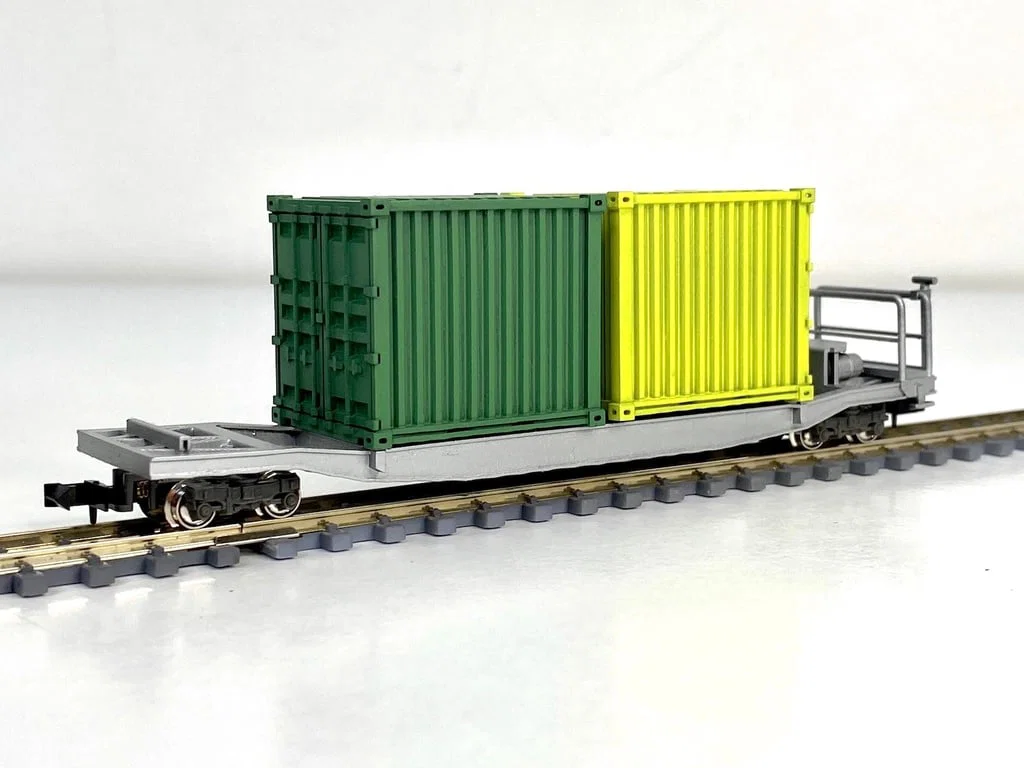 Toa xe sàn phẳng (flatbed) tỉ lệ H0e kèm container 10ft và 20ft. Bản mod có thêm connector cho bogie Kato 11-097/11-098/11-099 (N scale). Mỗi file STL có 2 bản, bản 2 có support.