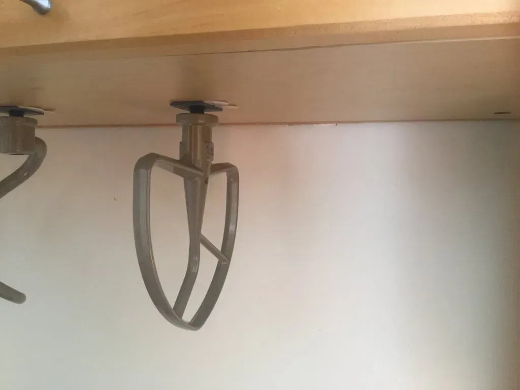 Bài viết này sẽ phù hợp với các lỗ gắn cho các phụ kiện máy trộn Kitchenaid (ví dụ: đánh trứng, đánh bột, v.v.). Tôi đã gắn nó vào mặt dưới của một cái tủ bằng các dải Command, và sử dụng nó để giữ các phụ kiện theo chiều dọc. Nó có thể hoạt động để giữ các phụ kiện theo chiều ngang, mặc dù tôi chưa thử nghiệm.