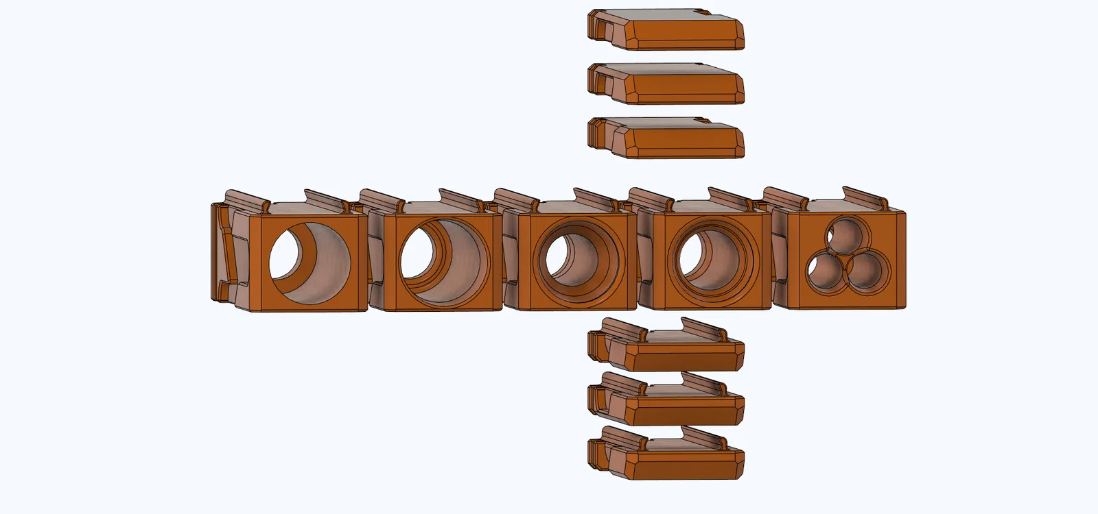 Các clip module nên in với 2 walls, 10% gyroid infill để vừa đủ cứng (đủ xài) mà vẫn nhẹ (tương đối).
