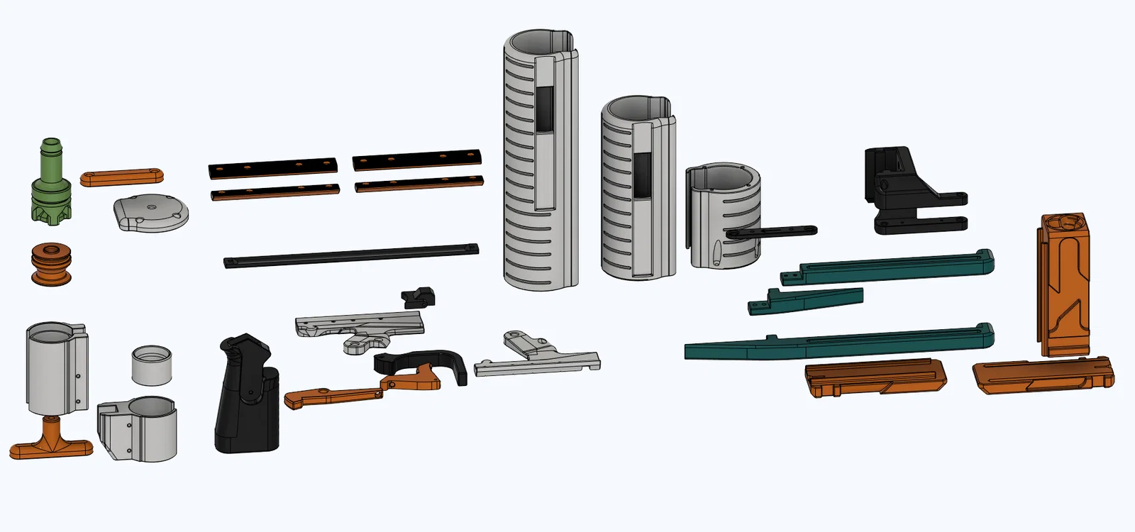 Các phần sear, ram, puller, sealer, spring cup, và T pull nên in với 5 walls, 100% infill.