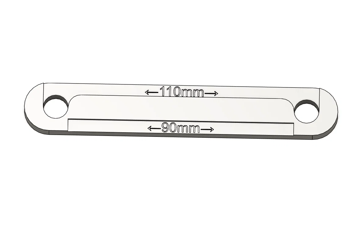 Mẫu in này có cấu tạo khá đơn giản nhưng vô cùng hữu ích với các mốc đo lường chuẩn xác được tích hợp sẵn. Trên thân mẫu, bạn sẽ thấy các khoảng cách cố định như 110mm và 90mm cùng các vị trí lỗ đo đặc trưng. Cách sử dụng rất trực quan: bạn chỉ cần in mẫu ra, sau đó sử dụng thước kẹp (caliper) để đo khoảng cách giữa hai tâm lỗ hoặc bề mặt các cạnh tương ứng. Nếu kết quả đo được nhỏ hơn so với kích thước thiết kế, đó chính là độ co rút của nhựa. Đây là cách làm chuẩn xác nhất giúp bạn loại bỏ các lỗi kích thước phiền toái trên sản phẩm cuối cùng.