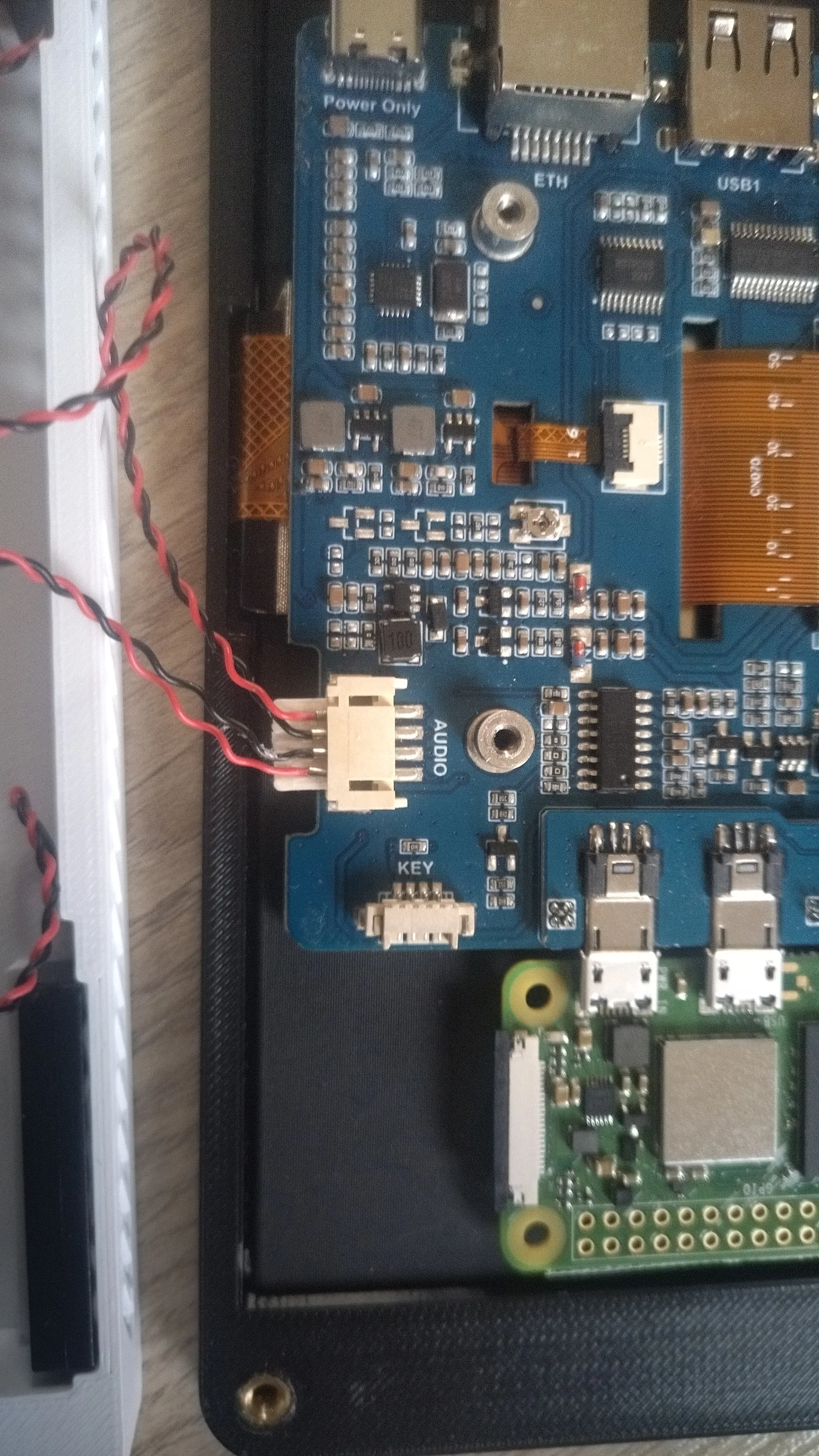 Vỏ cho màn hình Waveshare Zero-DISP-7A, cho phép thao tác các nút điều khiển ở phía trên và vẫn chừa lối để rút/tháo thẻ SD trên Raspberry Pi Zero(2), đồng thời truy cập được các cổng Power, eth, USB và audio out của màn hình. Có sẵn điểm bắt loa dọc theo cạnh dưới.