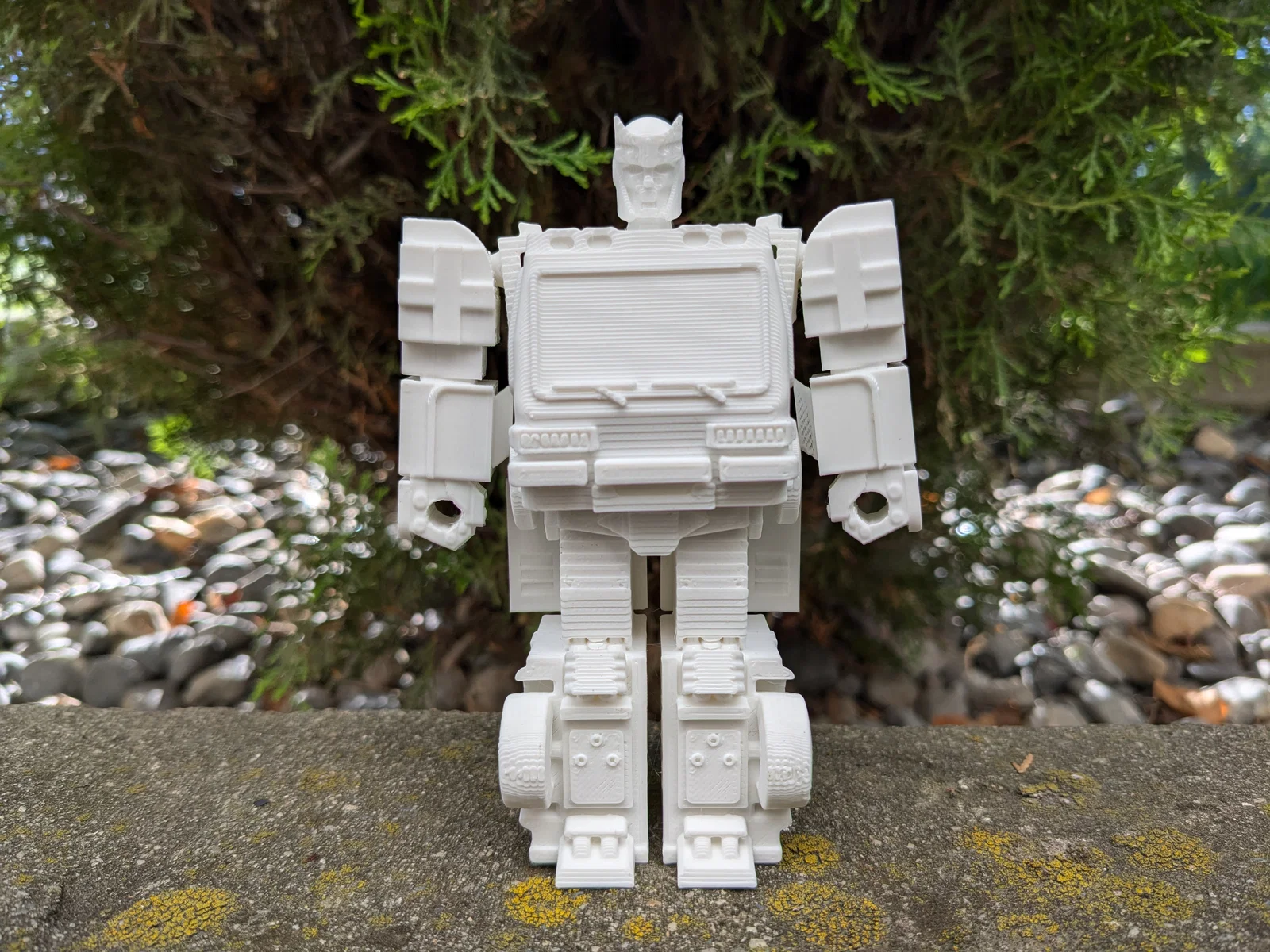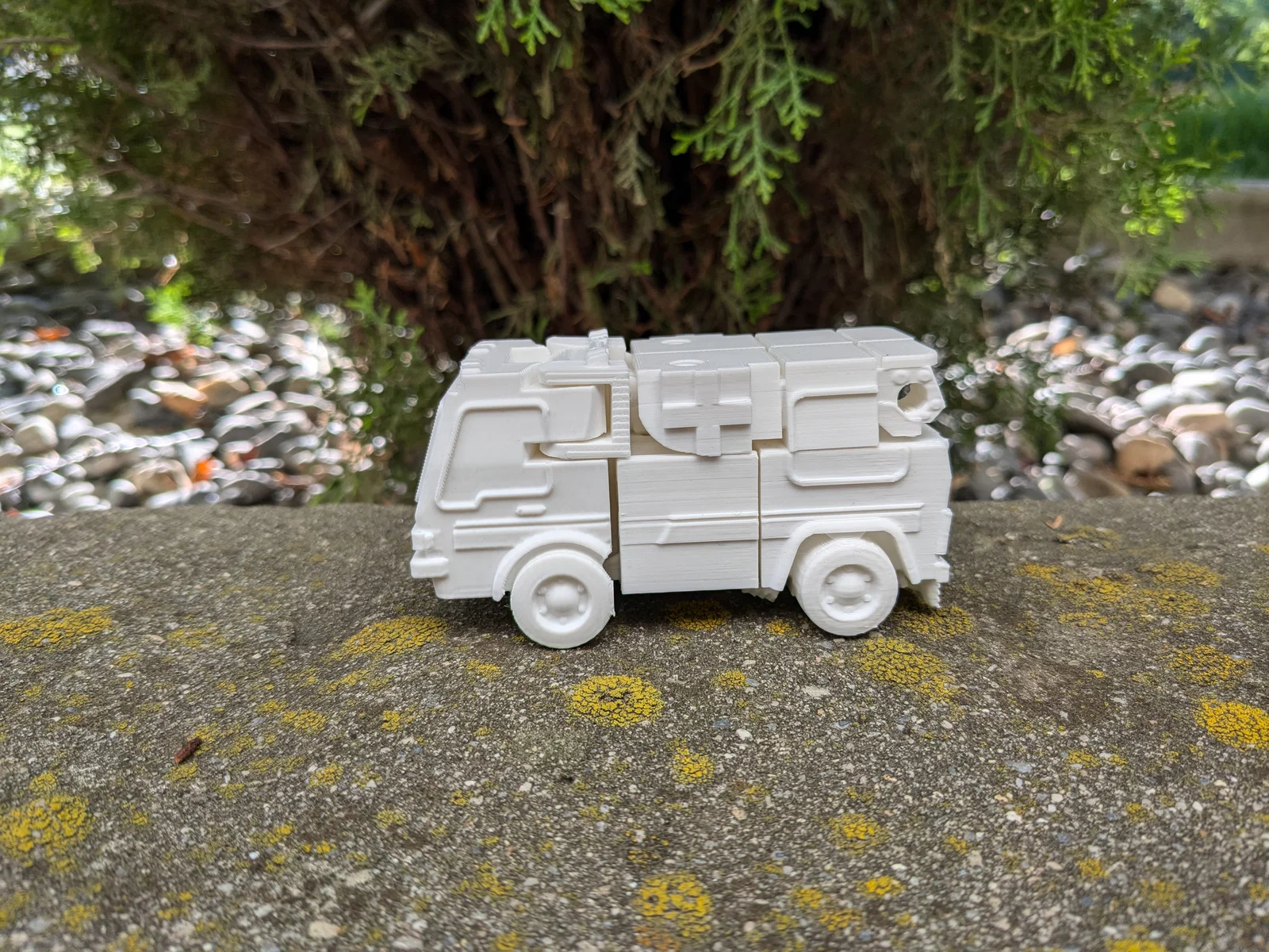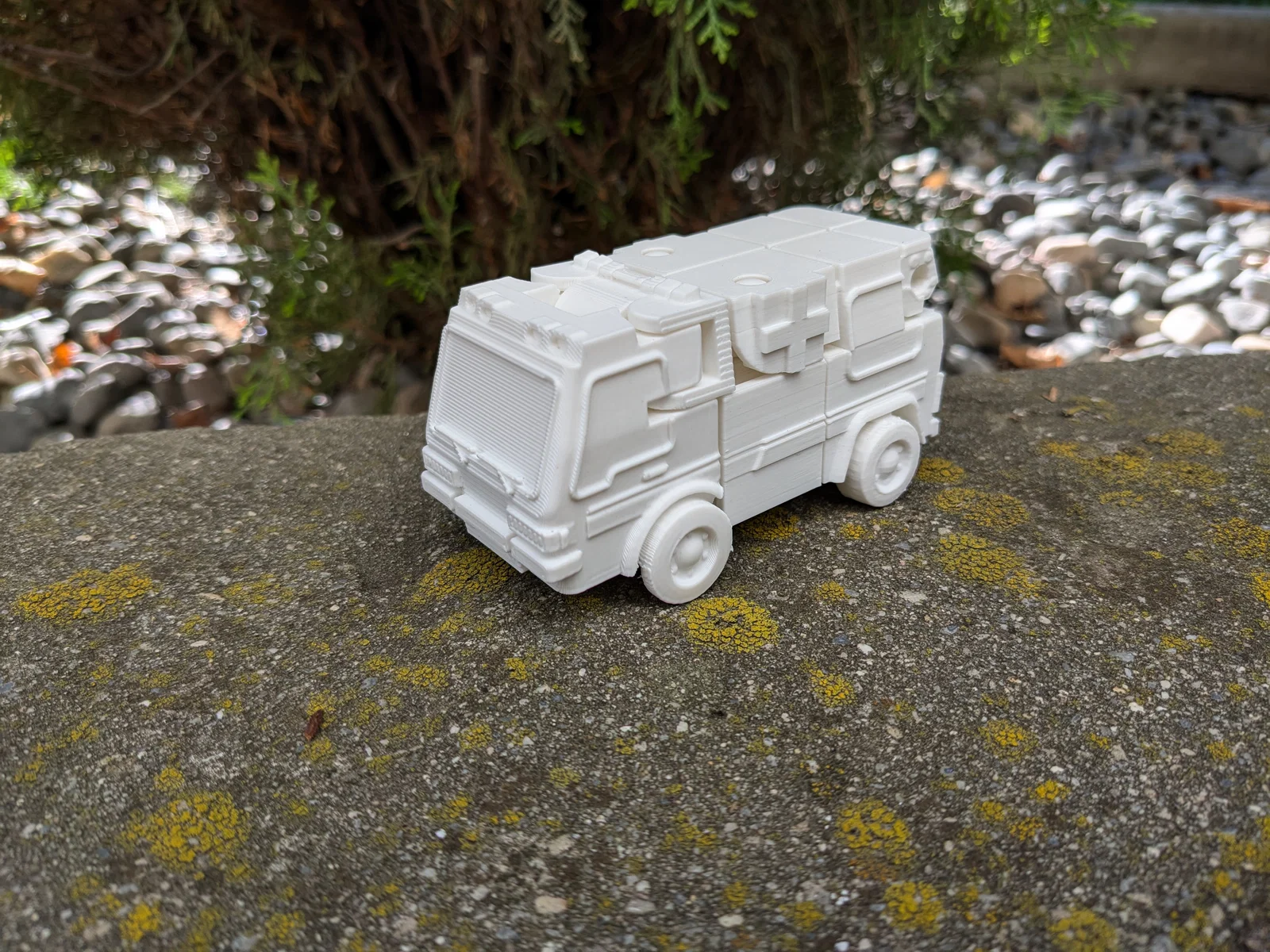 Ratchet – bác sĩ Autobot huyền thoại – phiên bản print-in-place: in 1 lần, không cần support/raft, lấy ra khỏi build plate là biến hình chơi liền. Có thêm arm blaster cất ở chế độ ambulance (đầu blaster cần support).