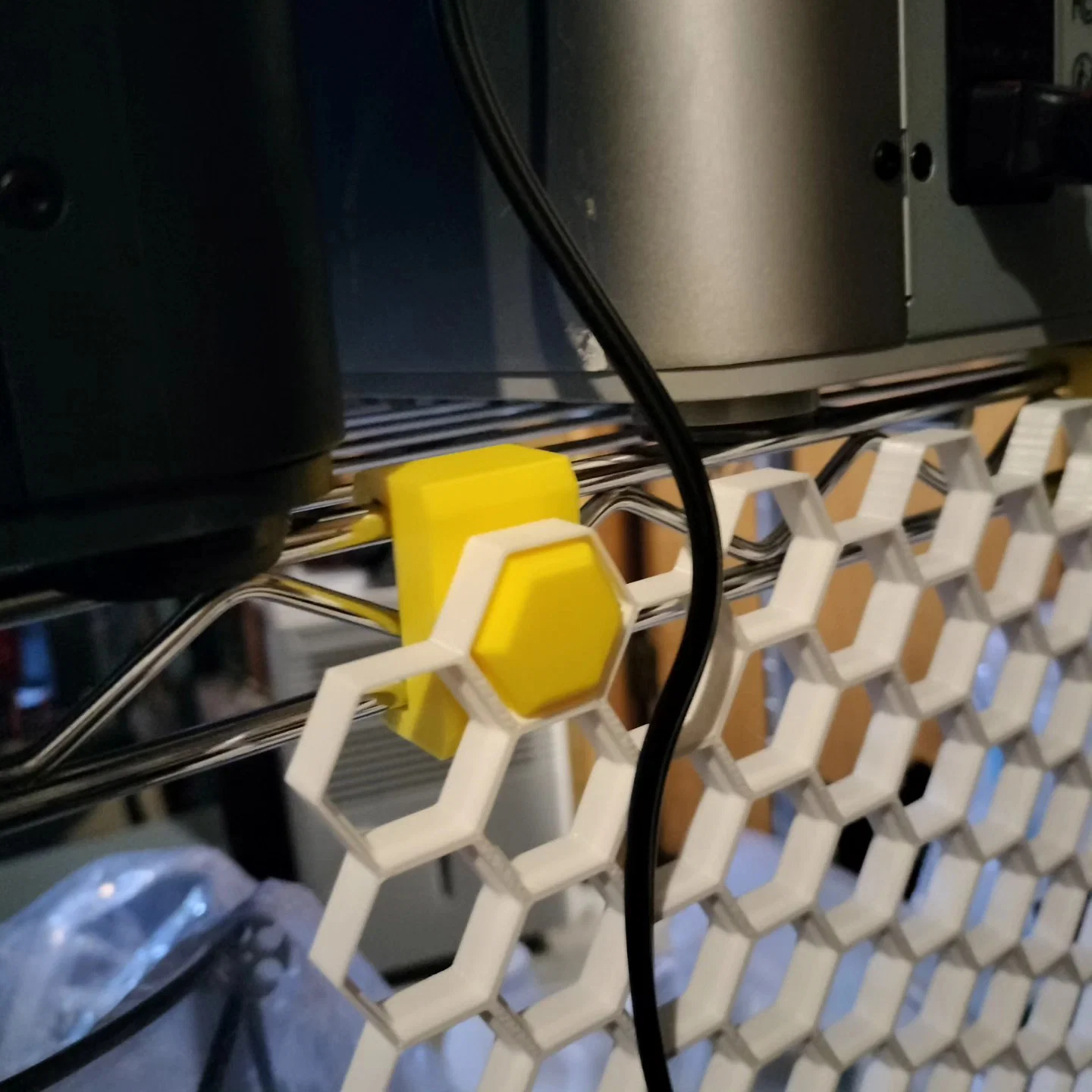 Mình muốn làm một món gì đó để có thể treo hệ honeycomb storage lên các kệ wire rack của mình. Sau vài lần thử thì cuối cùng mình cũng ra được một phiên bản chạy ổn (với mình). Mình không chắc nó có vừa với mọi loại wire rack một cách “universal” không; kệ của mình có chiều cao khoảng 29mm cho mỗi tầng. Nếu không vừa với kệ của bạn thì có thể bạn sẽ cần chỉnh sửa (modify) lại thiết kế.
