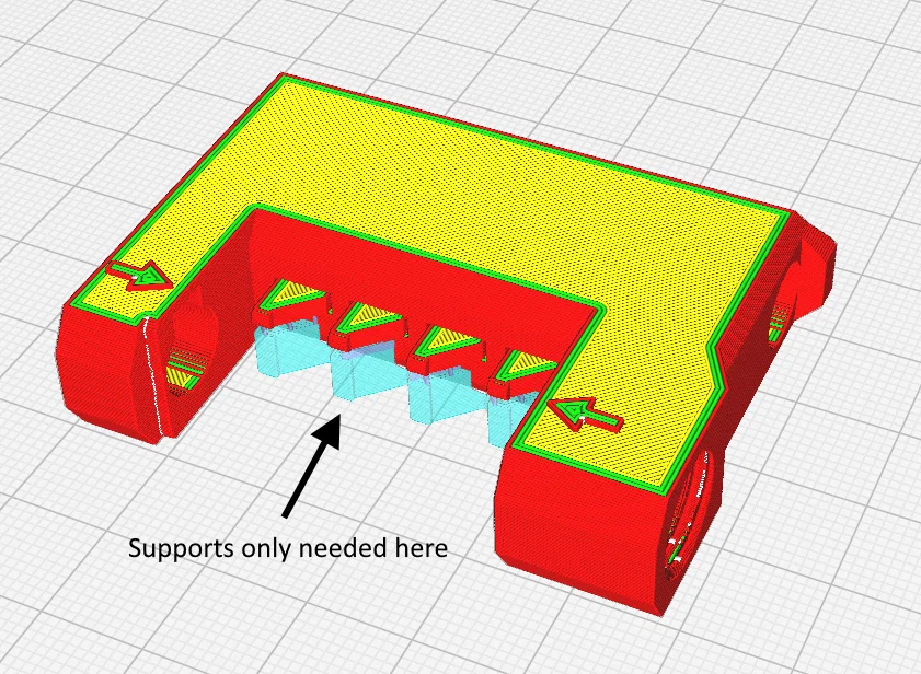 - Nhớ kiểm tra để slicer không tạo support nằm giữa lò xo và thân, vì đó là chỗ cần “breakaway” của print-in-place.