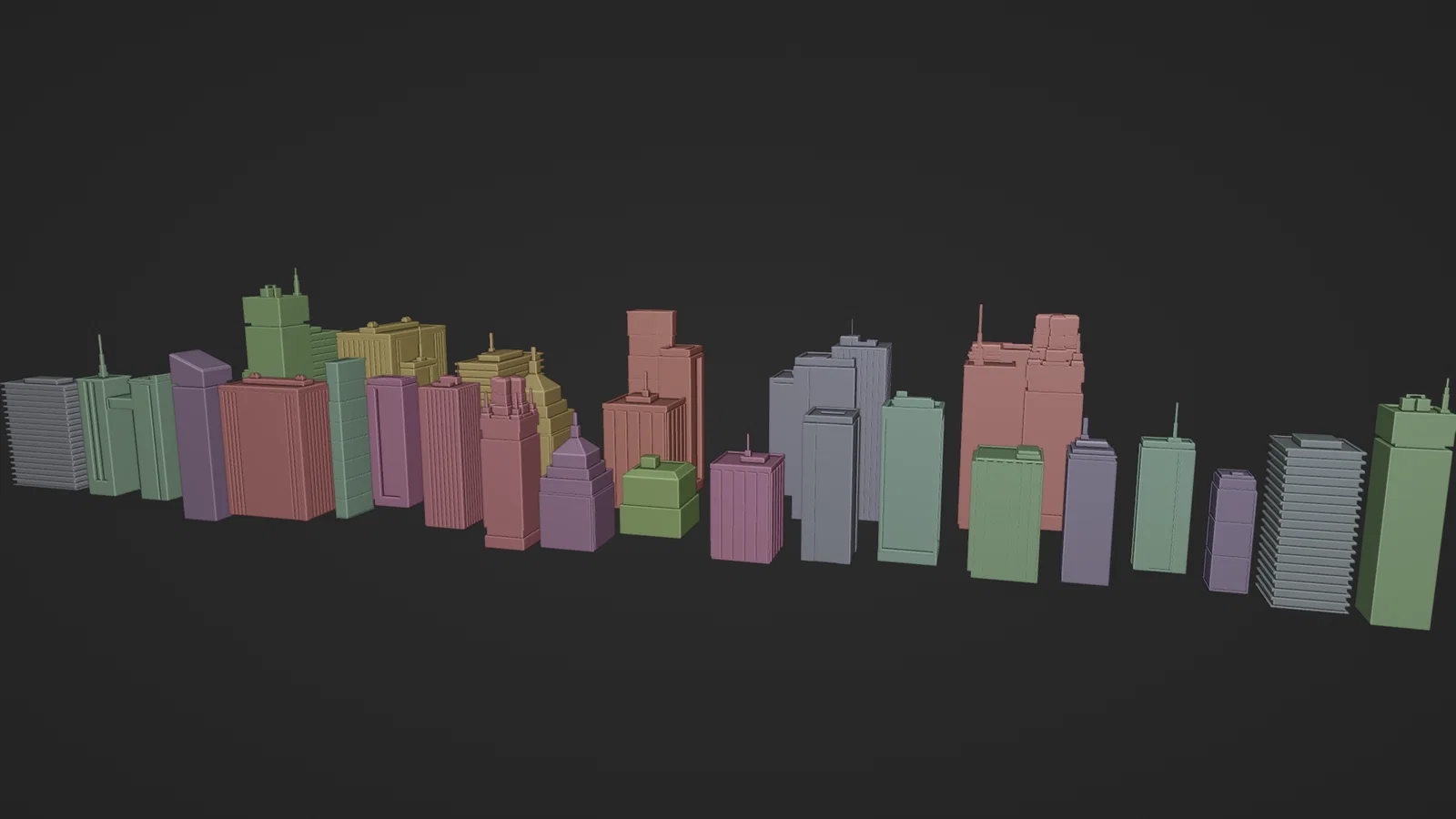 - Bộ sưu tập gồm 20 mẫu tòa nhà khác nhau với đa dạng kiểu dáng hình khối.