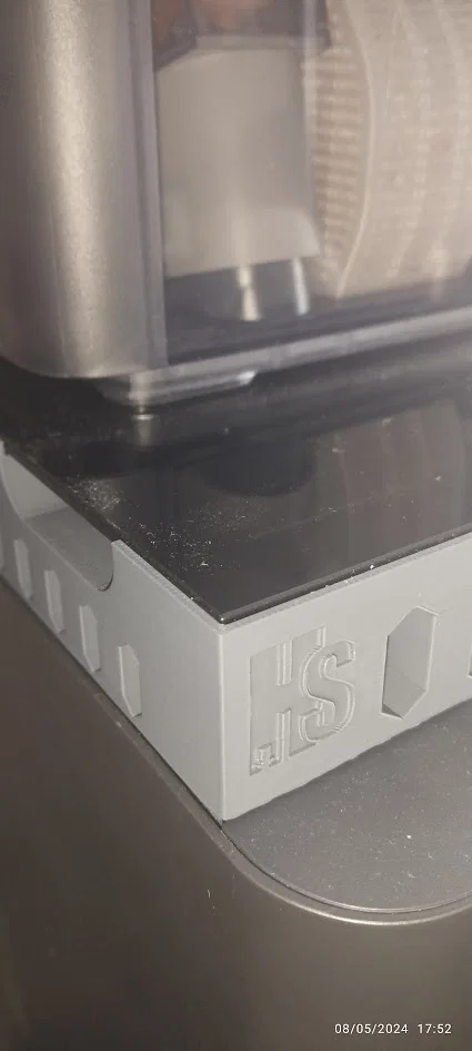 Top Glass Riser cho Bambu Lab P1S, chia 4 phần lắp bằng fittings, dễ in. Có thể dùng support chỉ chạm đế để mép 2mm khớp máy; in không support vẫn ổn. Tăng lưu thông không khí, hợp in PLA.