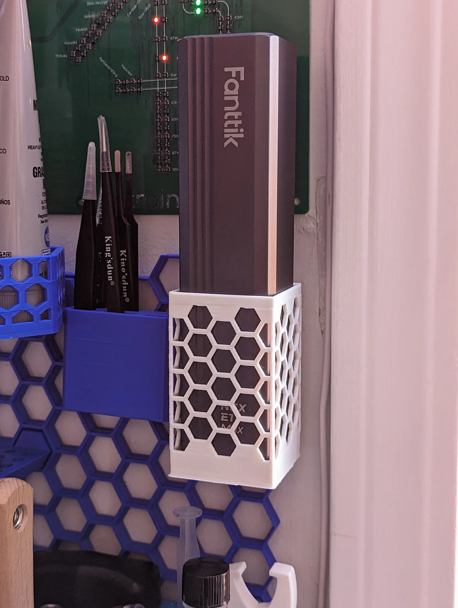 Một cái mount tương thích Honeycomb Storage Wall cho Fanttik Mini Electric Screwdriver. Phần đế có một lỗ để bạn có thể sạc tuốc nơ vít từ phía dưới.