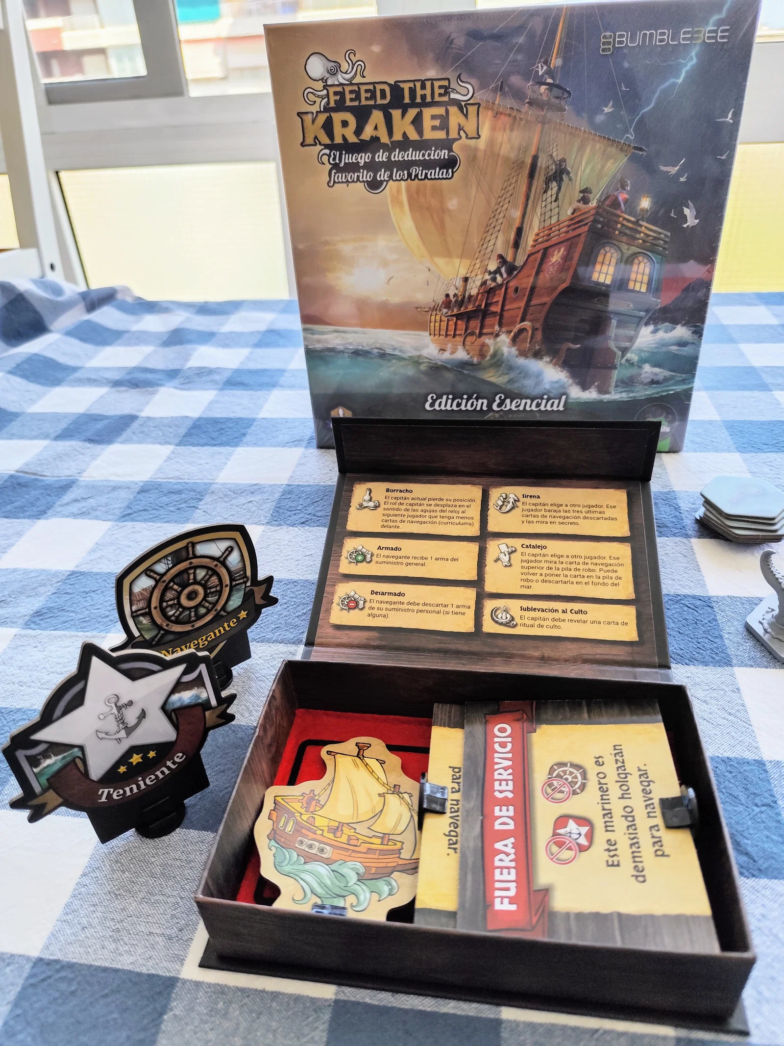 Insert/organizer cho Feed the Kraken bản Essential Edition: chứa bộ cơ bản và thêm vài nâng cấp. Có chỗ cho figurine, vũ khí trong rương kho báu, cardstock để trong Captain's Logbook. Gồm bản in 1 mảnh hoặc chia 4 phần.