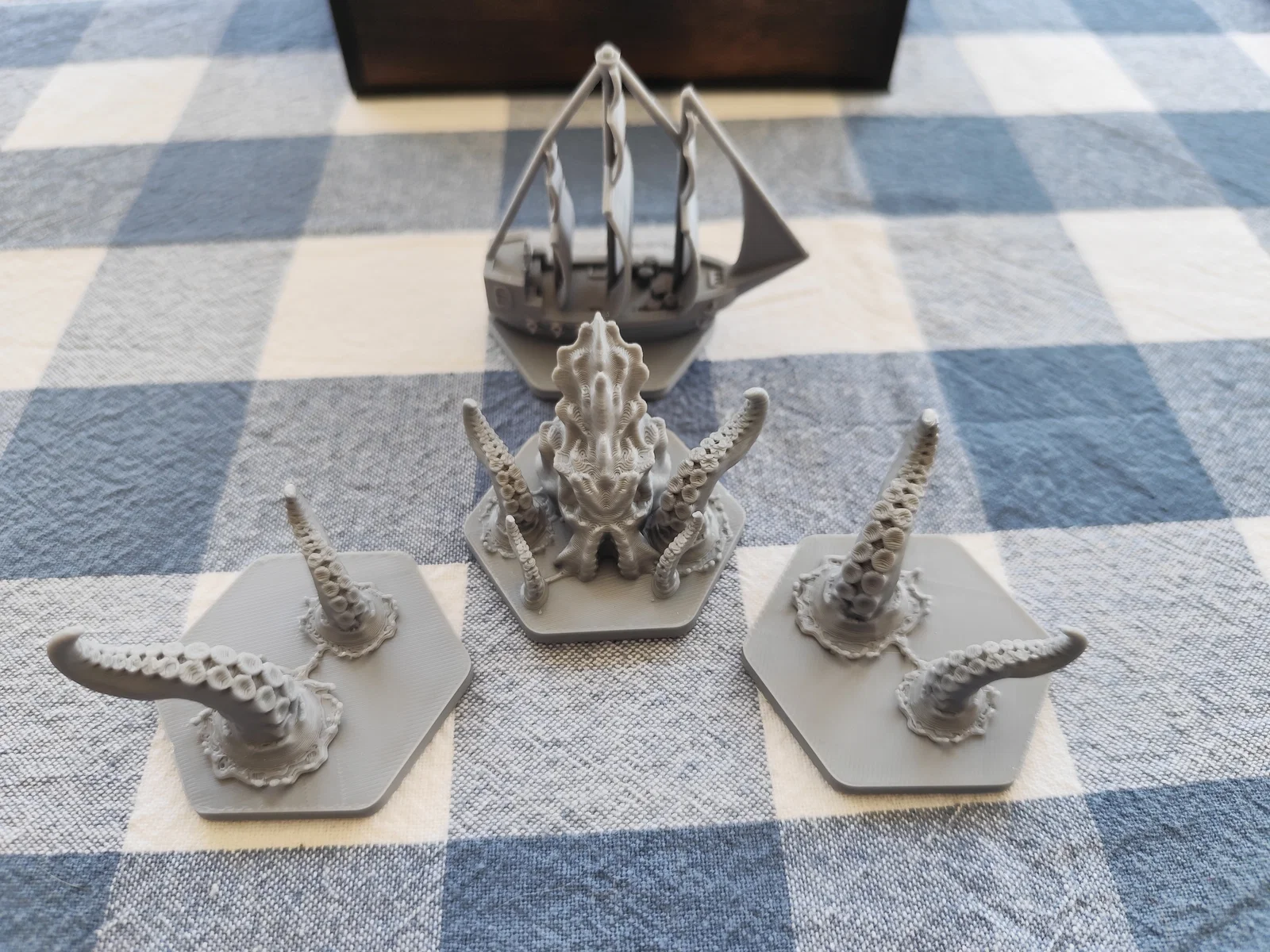 Với các deluxe components, mình rất khuyến nghị bộ token này của Pjoernrachzarck. Chất lượng rất tốt, chơi cầm nắm cũng vui. Cá nhân mình chỉ dùng các tượng kraken và khay đựng bài.