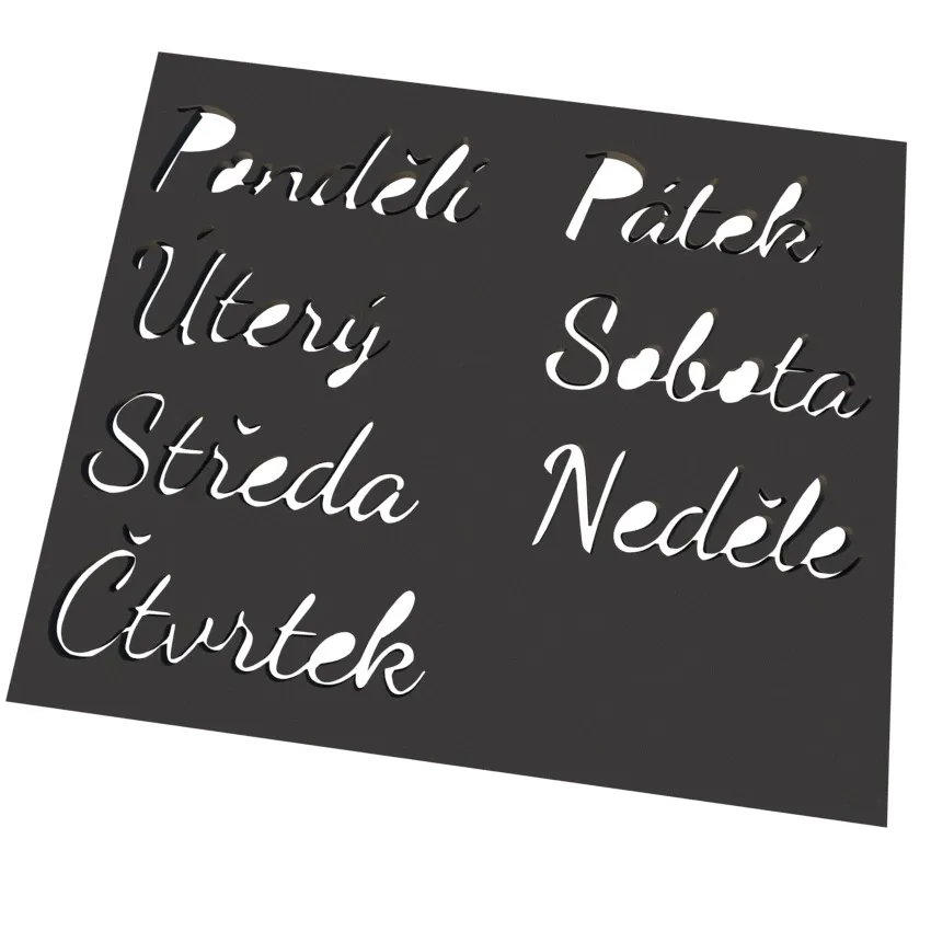 Bộ template “Template Days” (tiếng Séc & tiếng Anh) để theo dõi nhiệm vụ và mục tiêu. Thiết kế đơn giản, không cần support. Kích thước khoảng 125×100×1,6 mm; mỗi “day” cao khoảng 20 mm.