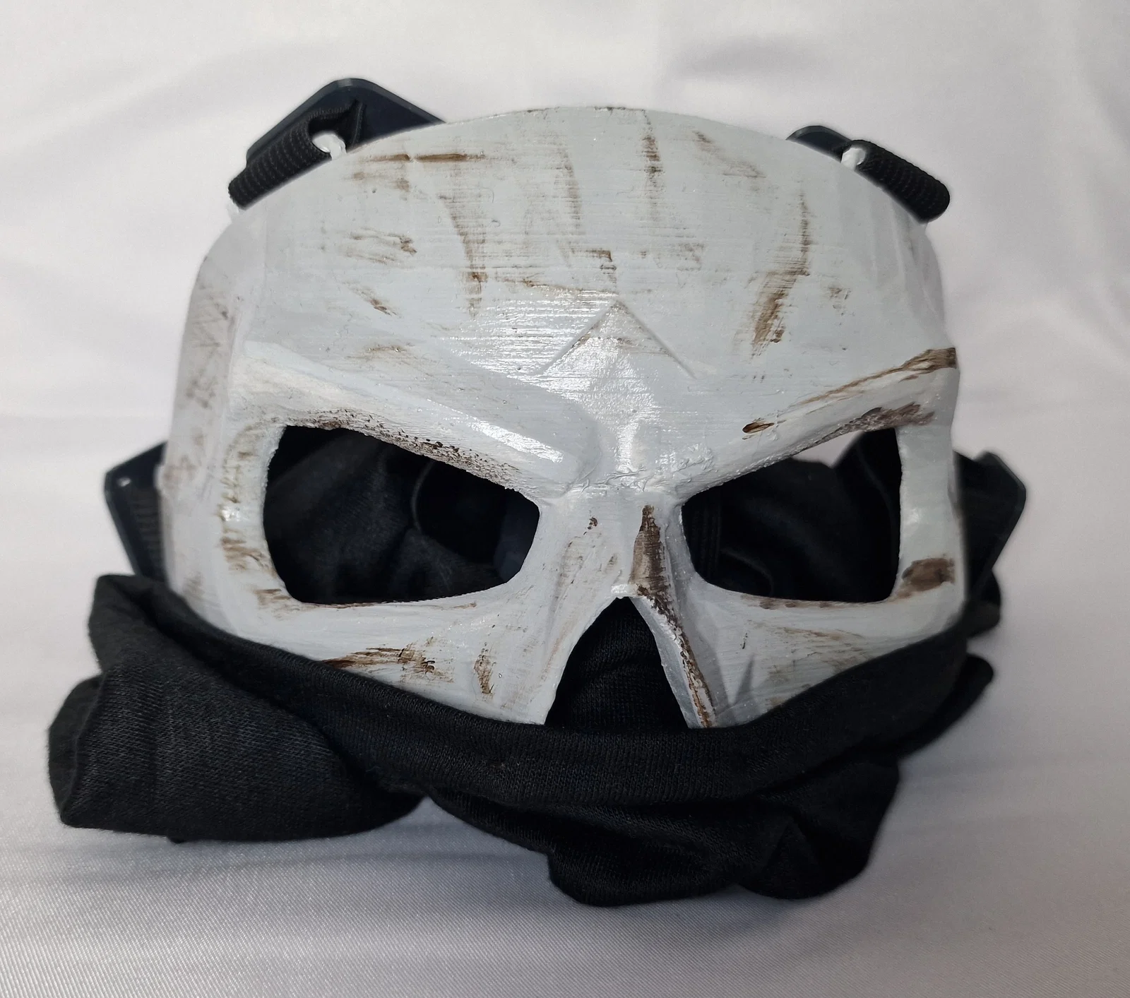 Phiên bản mặt nạ Ghost Red Team 141 được thu nhỏ cho đúng tỉ lệ giống trong game hơn, đồng thời có lỗ xỏ chỉ để khâu cố định cloth/scarf cho dễ canh và ổn định. Dùng dây thun 2cm, nên in kèm organic supports.