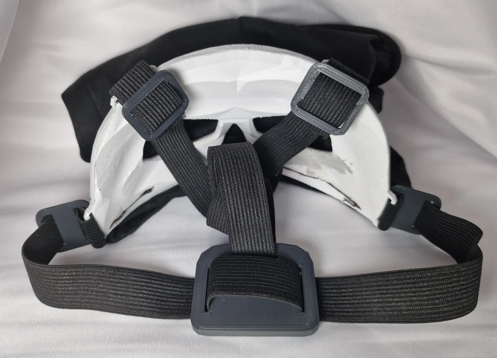 Khi in, bạn nên thêm organic supports cho các khe luồn ở dải trên (top band slits), nếu không thì sẽ không in đúng. Lúc gỡ support thì cẩn thận nha vì mấy cái khe đó khá giòn/dễ gãy. Nếu một trong hai chỗ nối vào mask bị gãy, cứ dán keo lại là được. Mình khuyên thật là nên đo và cắt dây thun sao cho không tạo quá nhiều lực/căng lên các khe luồn.