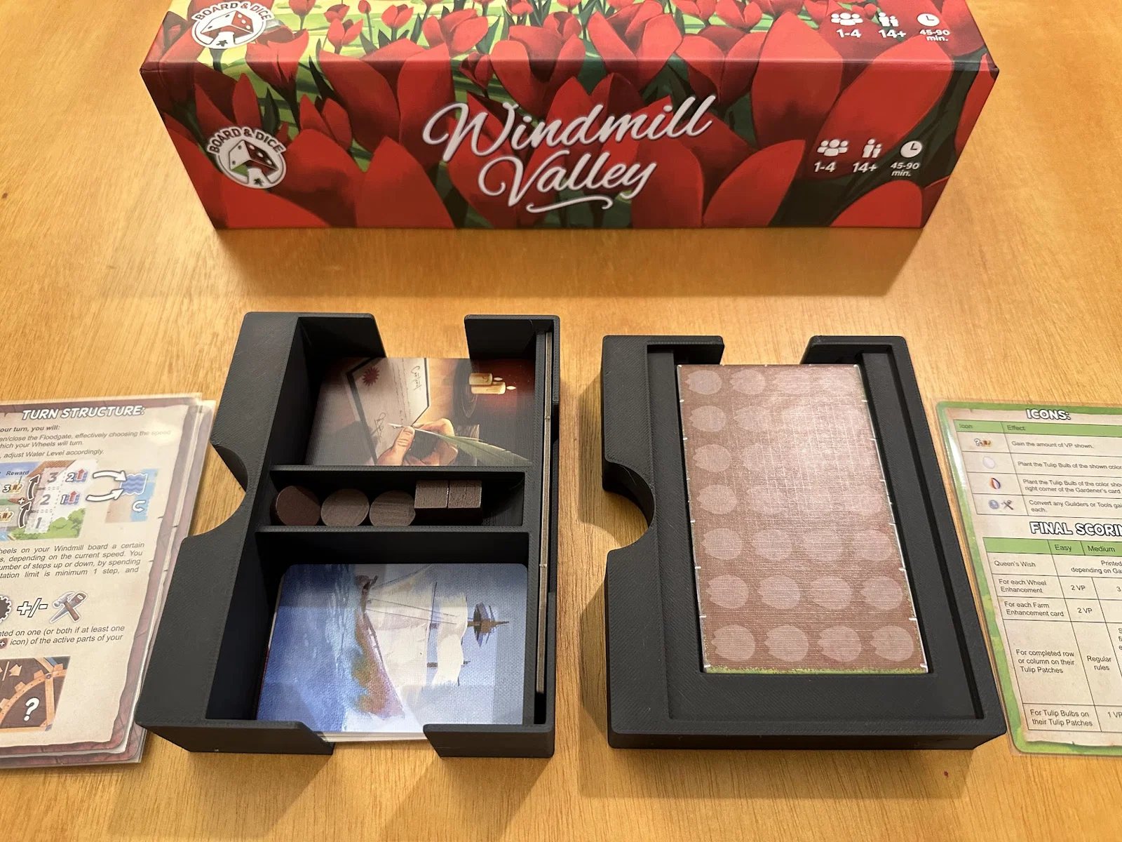 Đây là insert cho Windmill Valley, một tựa game rất đẹp, nơi bạn trồng tulip và nâng cấp cối xay gió để ghi được nhiều điểm nhất có thể trong số lượt chơi thay đổi. Insert này có vài khay giúp setup và dọn game nhanh hơn, kèm một khay chơi solo và chỗ để thêm các promo enhancement.