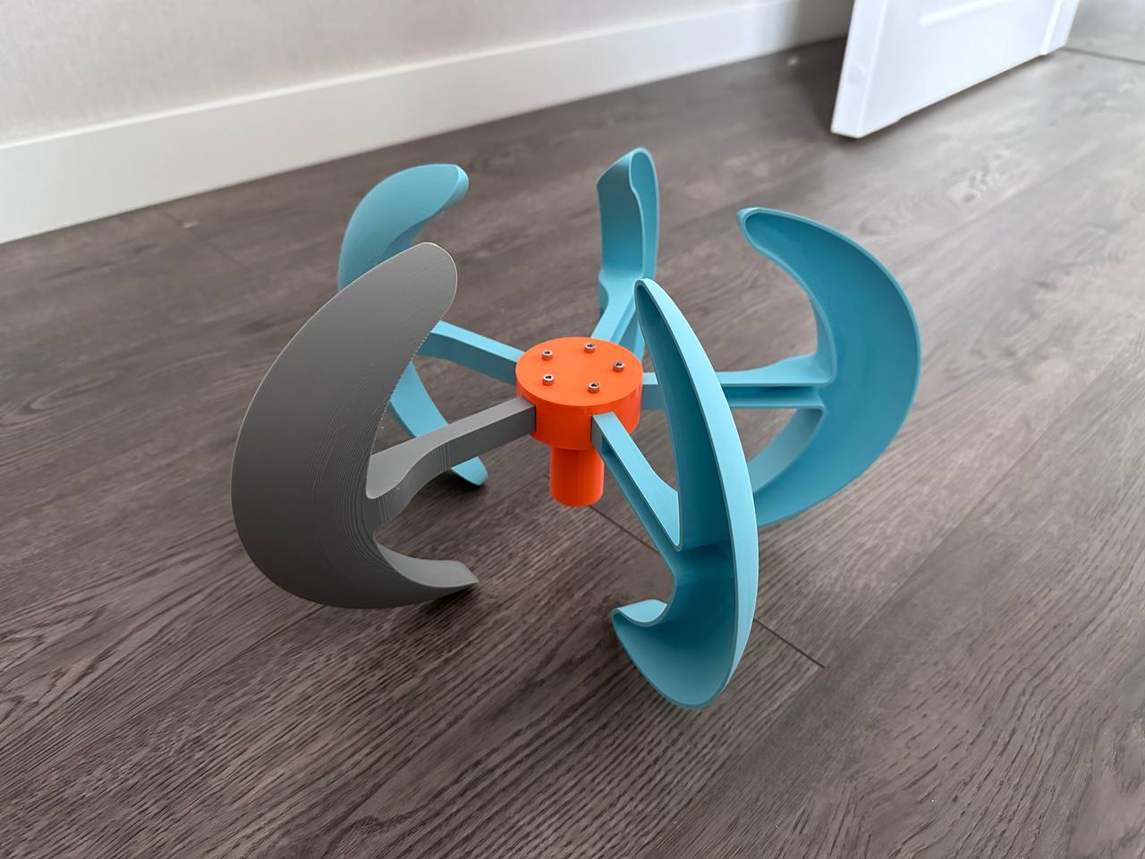 Mẫu Garden wind spinner dạng đứng để trang trí sân vườn/ngoài trời. Gợi ý in: stack PETG (3 walls, 10% infill) và cánh PLA (3 walls, 5–7% infill, có supports). Cần ty ren M8, ốc/long đền DIN và vòng bi.