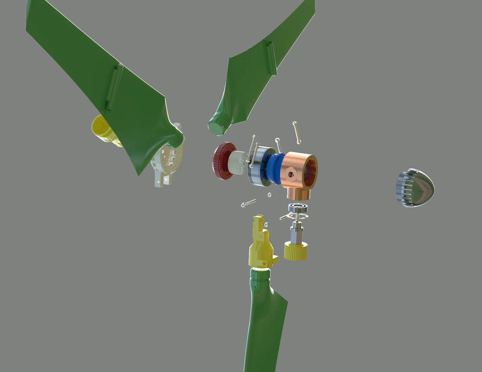 Dự án tuabin gió di động với cánh gập dùng cơ cấu bản lề giúp gọn khi mang theo. Thiết kế cánh tính bằng QBlade, kèm file STEP để sửa trong CAD, có video lắp ráp và test thực địa. In 3D bằng PETG.