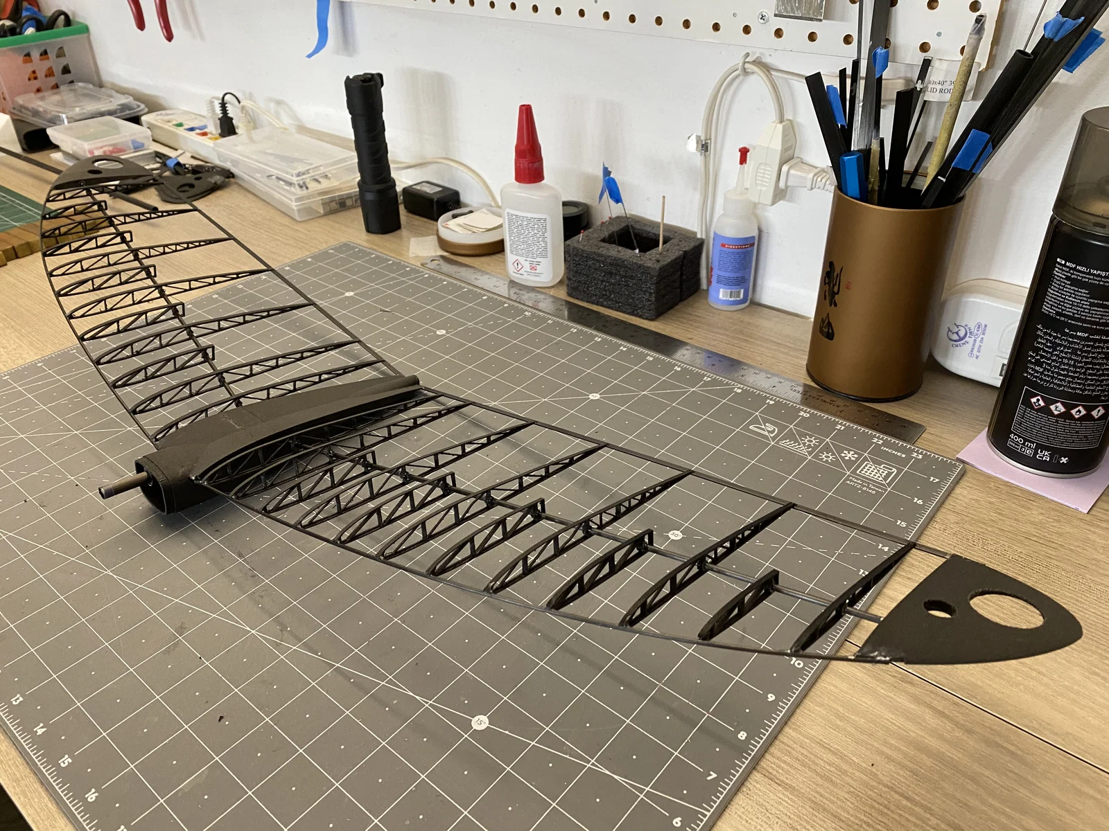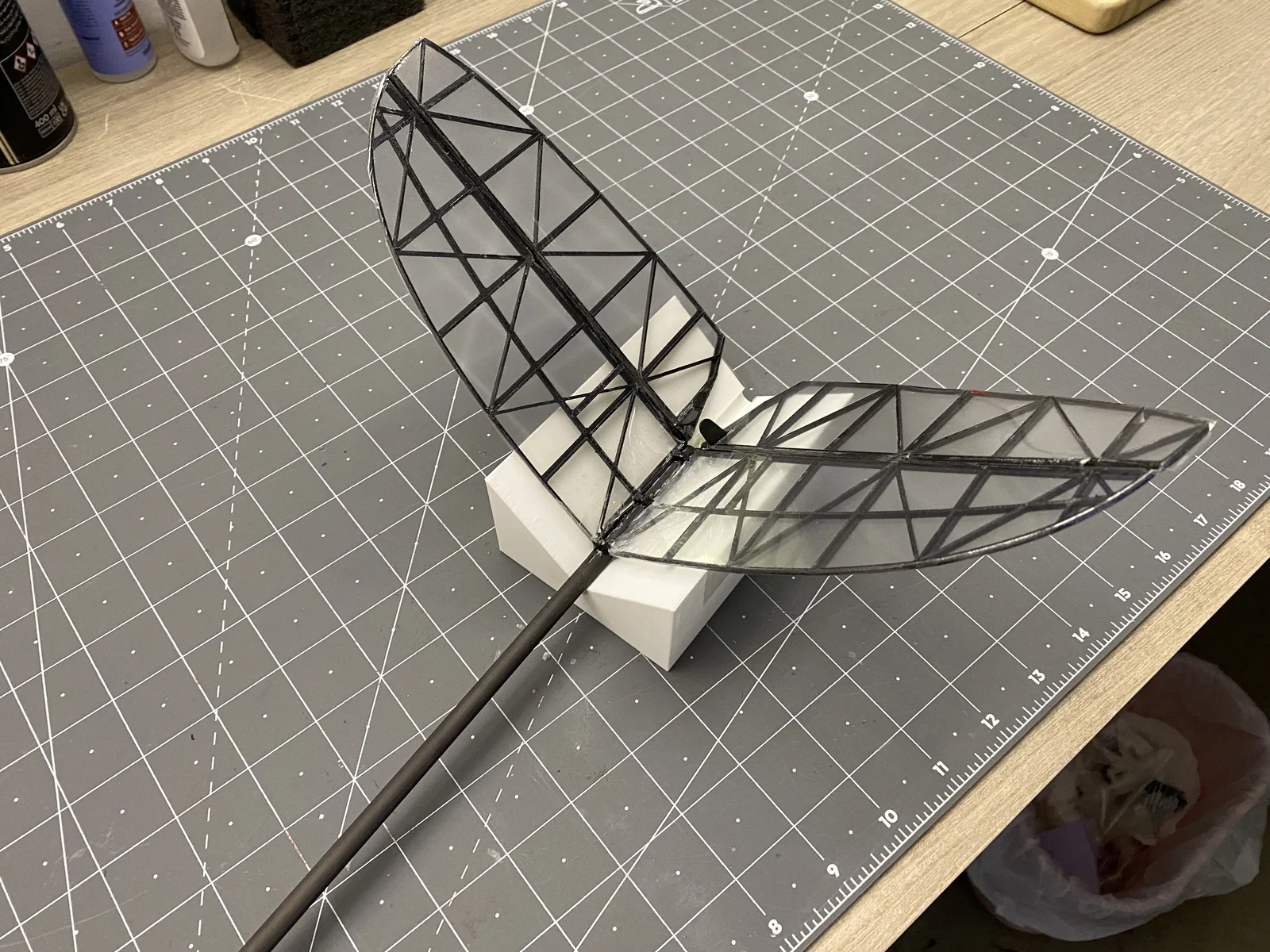 "Bug Lite" - máy bay lượn điện DLG (F5K) in 3D, dùng filament foaming LW-PLA và Carbon Nylon PA-CF để đạt tỉ lệ trọng lượng/độ cứng tối ưu. Bản phát hành này còn có V-tail dạng khung xương (skeleton) thiết kế mới, thân (fuselage) điện tích hợp, v.v.