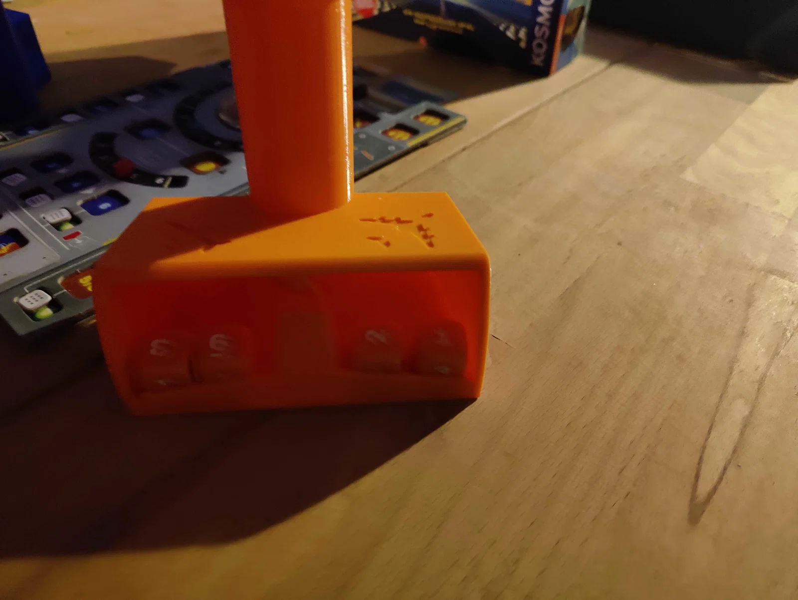Mình dự định sớm đăng một phiên bản nâng cấp, với đế rộng hơn và có thêm không gian để dễ lấy xúc xắc ra khỏi hangar.
