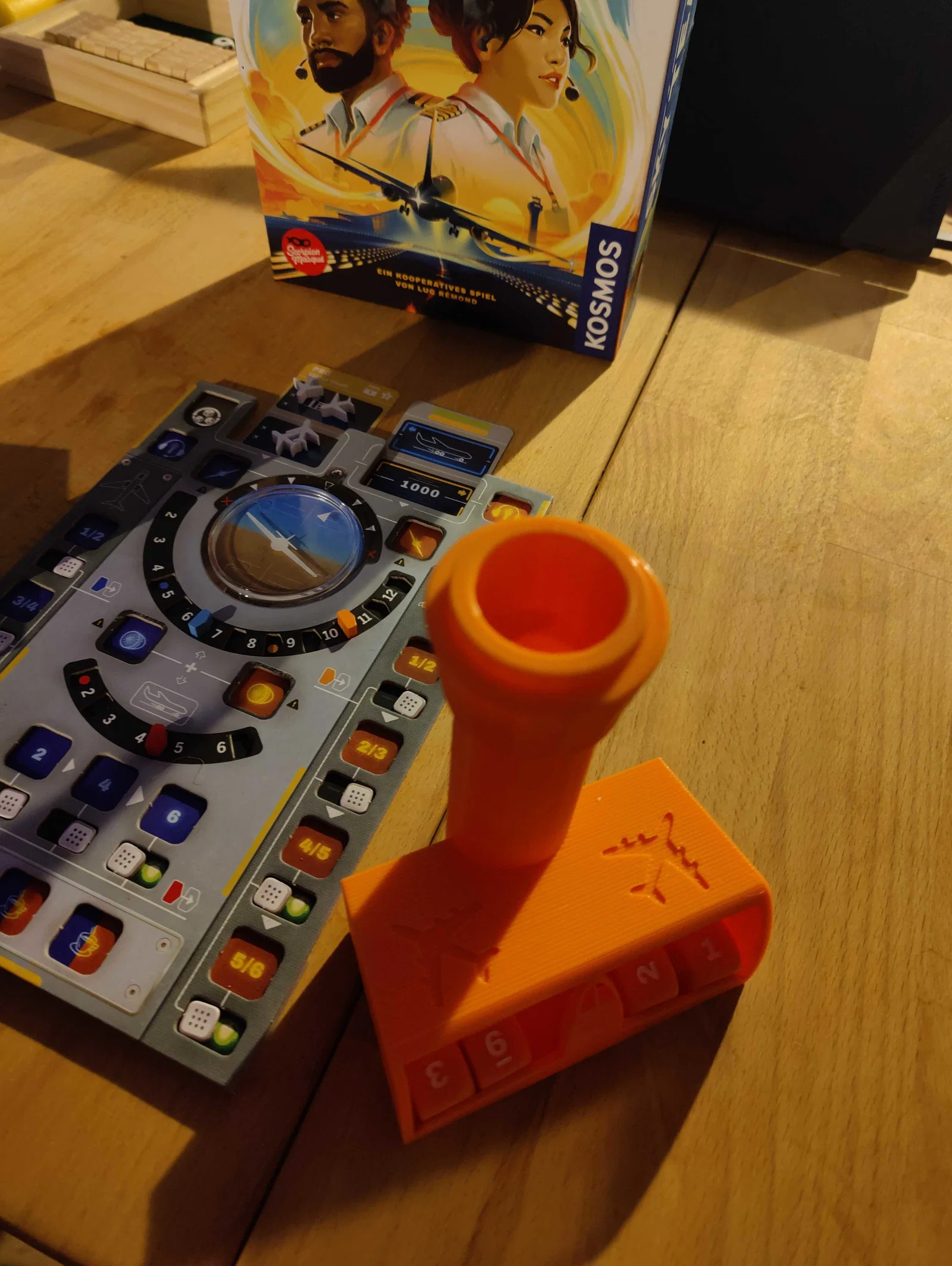 Dice tower cho Sky Team theo hình tháp kiểm soát không lưu kèm hangar bên hông để che xúc xắc. In dựng đứng không cần supports (0.2 layer height, 15% infill). Sắp có bản nâng cấp đế rộng hơn, dễ lấy dice hơn.