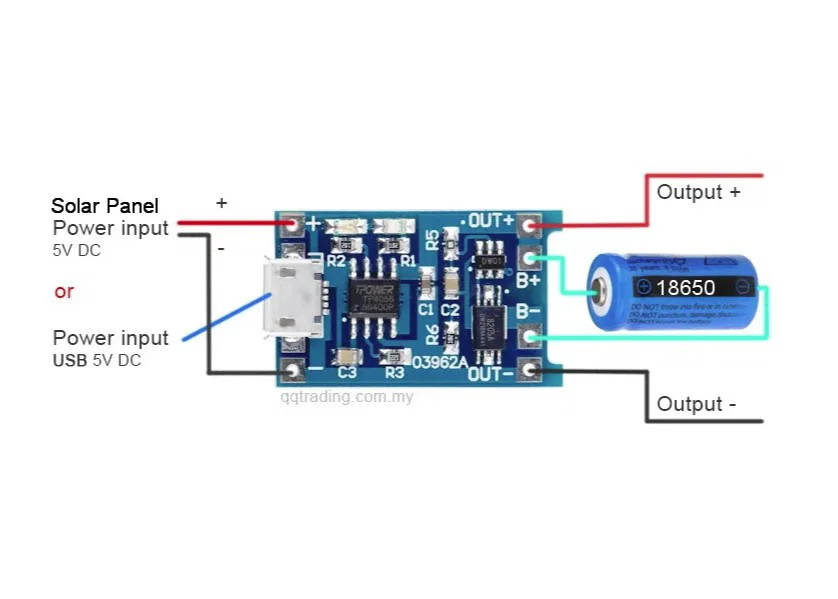 Hoặc thay vì phương án trên, bạn có thể dùng module 4056 và khay pin 18650: https://www.aliexpress.com/item/5-pcs-Micro-USB-5V-1A-18650-TP4056-Lithium-Battery-Charger-Module-Charging-Board-With-Protection/32895526166.html?spm=2114.search0104.3.31.6ca0309dPzVit6&ws_ab_test=searchweb0_0,searchweb201602_3_10065_10130_10068_10547_319_10546_317_10548_10545_10696_10084_453_454_10083_10618_10307_537_536_10059_10884_10887_321_322_10103,searchweb201603_52,ppcSwitch_0&algo_expid=92312eb7-da36-4b23-ba68-e1c9c45b49f2-4&algo_pvid=92312eb7-da36-4b23-ba68-e1c9c45b49f2&transAbTest=ae803_4