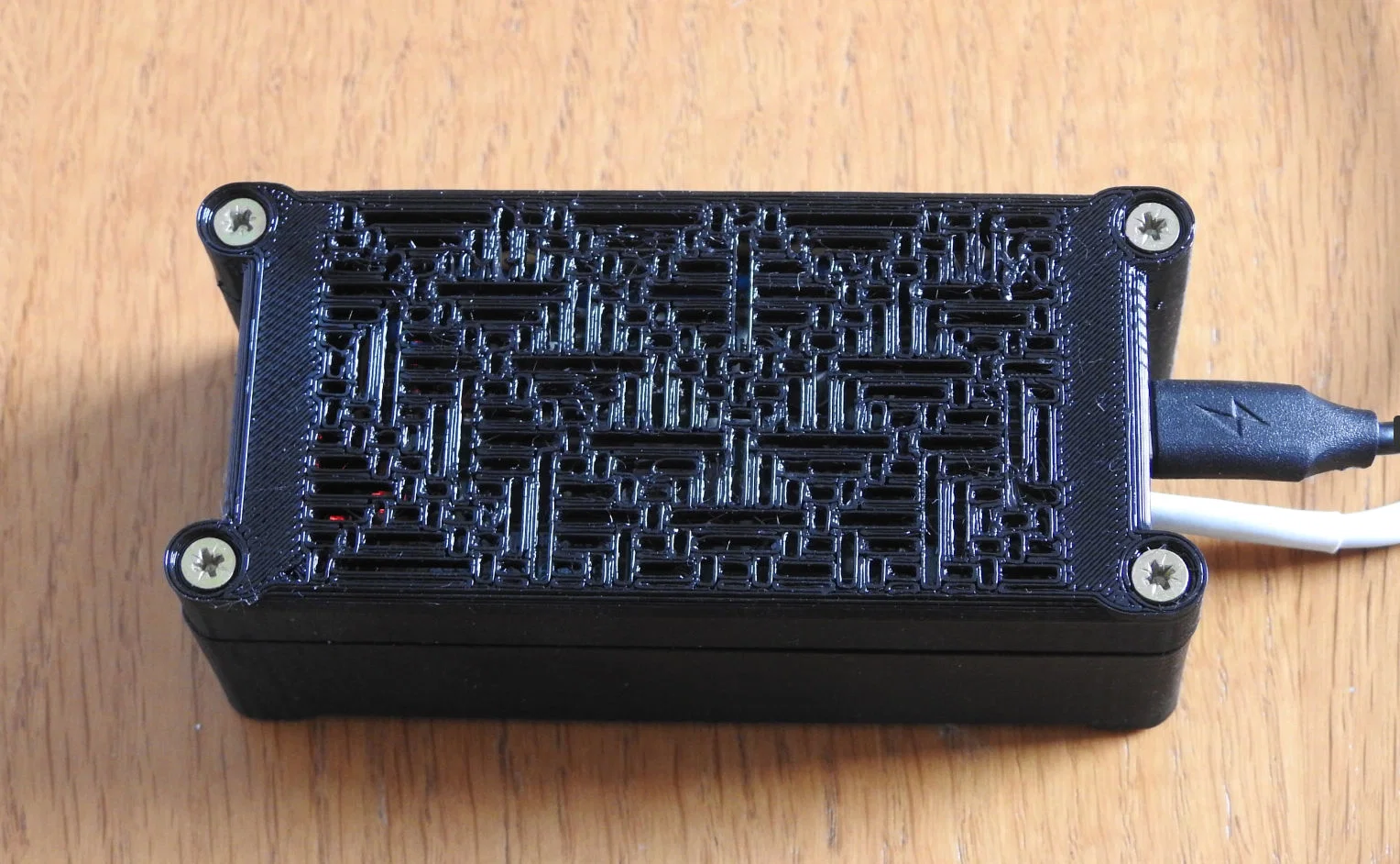 Mình thấy UPS hơi ấm lên khi cấp nguồn cho một cái switch, nên mình quyết định thêm các khe thoáng. Để khỏi nhìn đơn điệu, mình làm khe thoáng theo kiểu vyshyvanka đơn sắc dạng “polarized” (vyshyvanka). Chỉ cần in ups-cable-top-vents-vyshyvanka.stl thay cho ups-cable-top.stl.