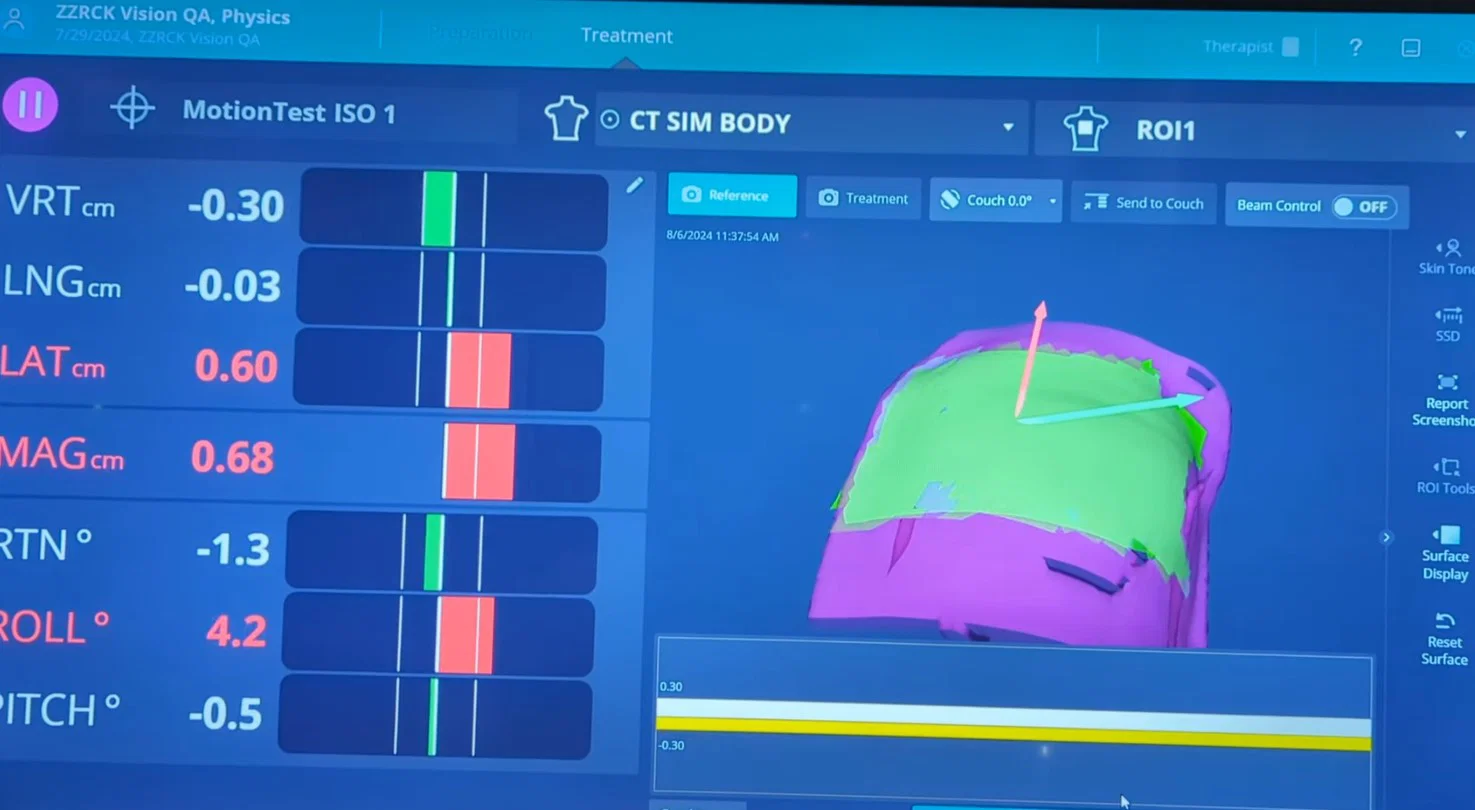 Trường hợp của mình là mình chụp CT phantom ở “full inspiration” khi đã dừng motor. Sau đó dùng dữ liệu này để tạo plan và đẩy qua accelerator / hệ SGRT. Bọn mình làm được quy trình “end to end” cho therapists, có kèm beam hold như một phần của training.