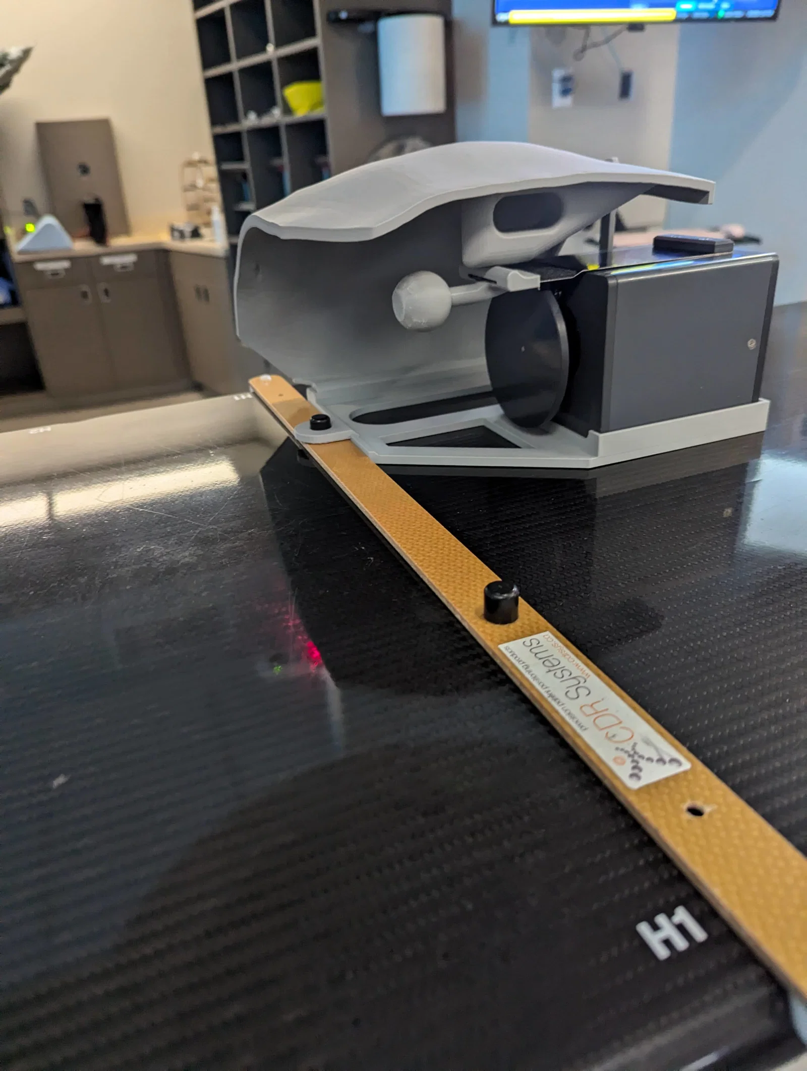 Bạn cần có một “Varian Breathing Phantom” — cái hộp cơ khí nhỏ có cam lệch tâm (eccentric cam) làm cái cần gạt đi lên xuống. (Không biết có phải máy nào cũng đi kèm không?) Có vẻ như chỗ nào cũng có một cái bị để quên trong kho/tủ.