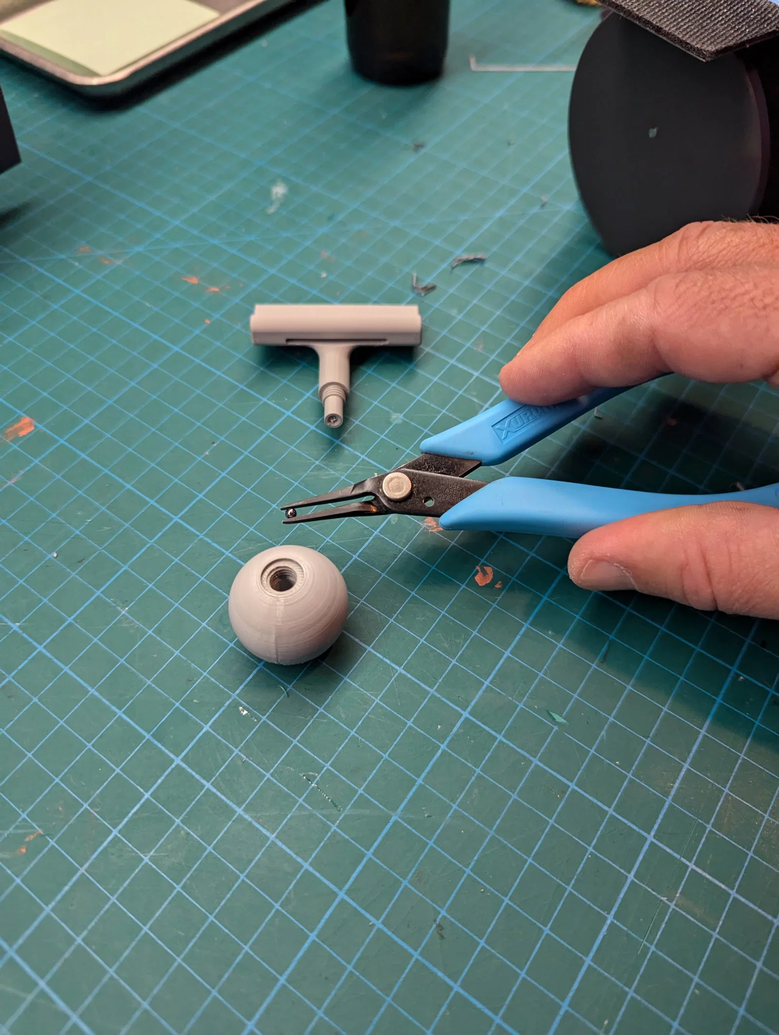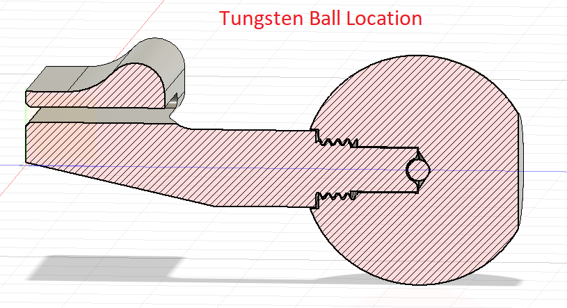 - Tuỳ chọn quả cầu 4DCT có viên bi tungsten. ($5 USD cho gói 5 viên từ Mcmaster). Viên bi được đặt rất gần tâm của quả cầu. Mình không muốn nói chính xác là bao nhiêu, nhưng vị trí chỉ cần tương đối là được. Không nhất thiết phải dùng tungsten (mình có sẵn). Thả một viên bi chì (lead BB) vào cũng chạy tốt. Nếu BB nhỏ hơn, mình khuyên nhỏ một giọt keo CA để khỏi bị lắc/rung rồi dịch chuyển.