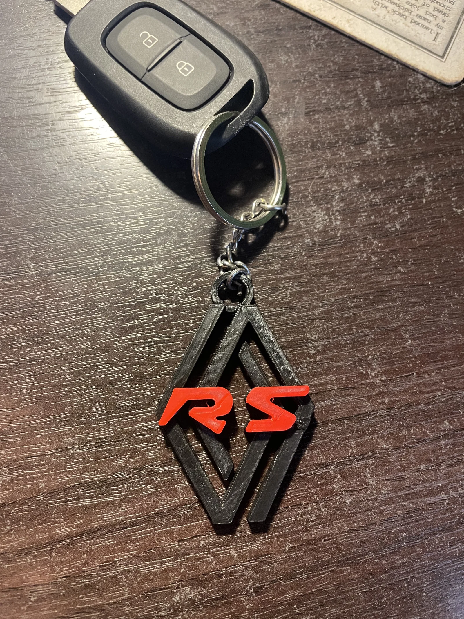 Mẫu móc khóa Renault RS/Renault Sport với nền logo Renault mới. File STL một màu, có thể dùng _pause at height_ để đổi filament làm 2 màu đỏ-đen. Gồm 2 phiên bản: một bản không support cho chấm chữ R và một bản có support/raft nhỏ.