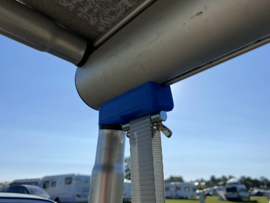 Adapter cho thanh góc WIGO, giúp cố định Eckstange đúng góc lên trục mà không làm cong ren hay Nutenstein. Có thêm điểm neo cho dây Spanngurt 25mm. Khuyến nghị in PETG, infill 70%.