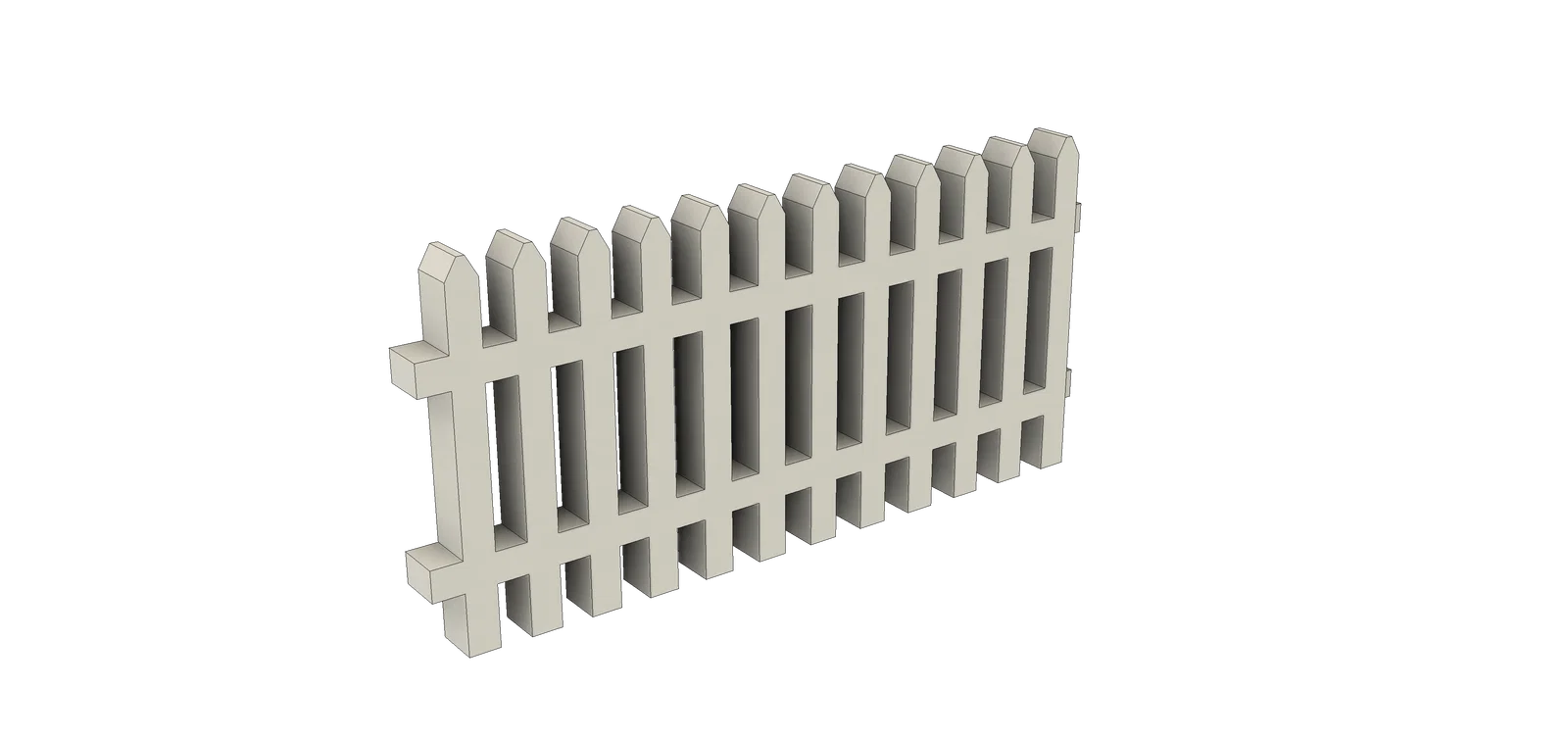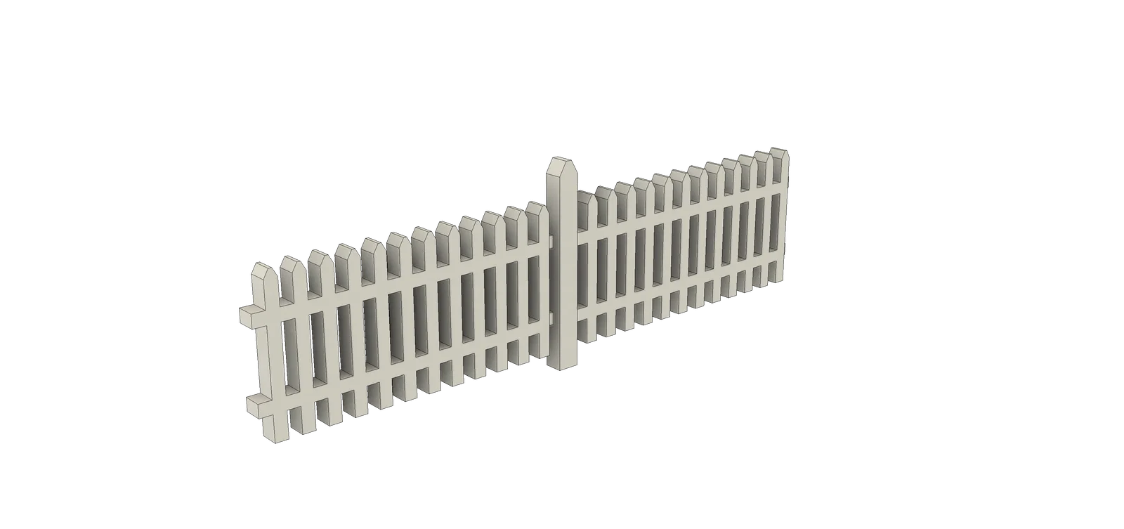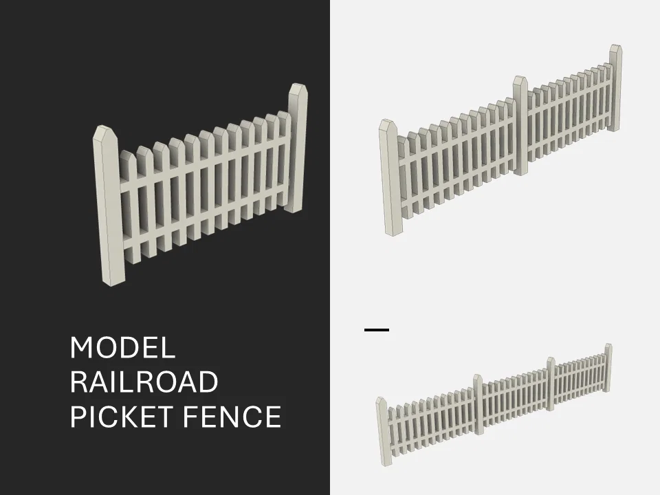 Đây là một đoạn hàng rào picket được tạo cho bố cục đường tàu mô hình o-scale tỉ lệ 1:48. Bạn có thể scale lại để phù hợp với bất kỳ tỉ lệ nào khác, hoặc in ra để trang trí – (ho scale là scale xuống 50%, còn n scale khoảng 25%).