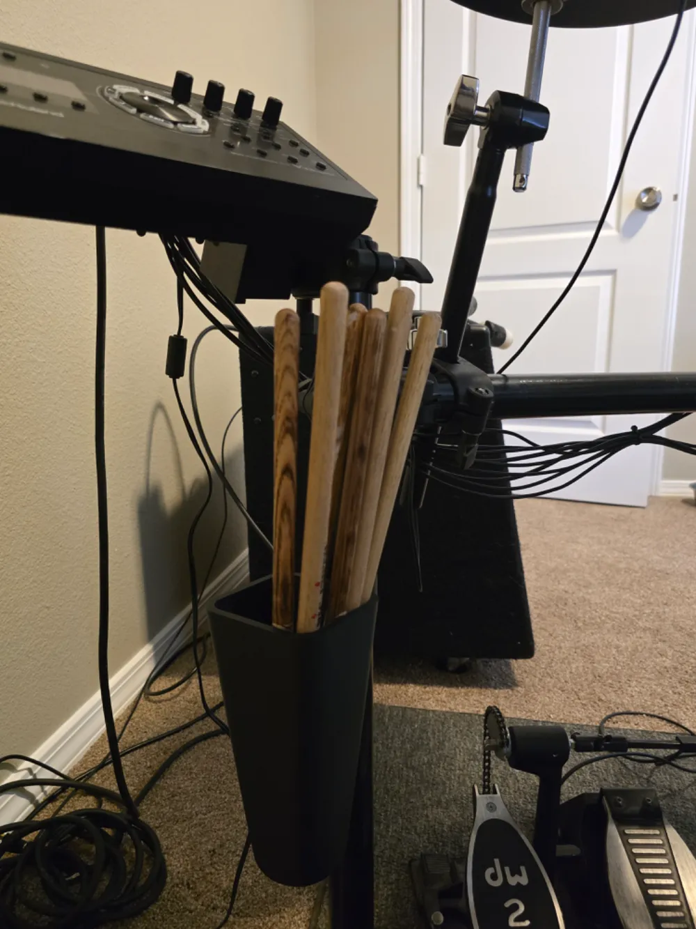 Kẹp giữ dùi trống chắc chắn cho bộ trống điện. Kẹp này bám rất gọn lên rack của Roland TD-17 của mình, nhưng cũng nên phù hợp với mọi loại rack tube đường kính 40mm.